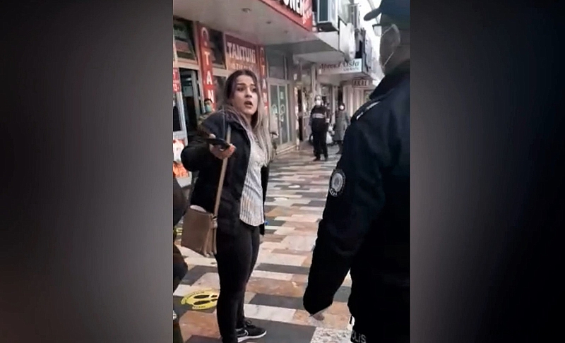 O anlar ise bir vatandaşın cep telefonu kamerası tarafından kaydedildi. Kimlik vermeyeceğini söyleyen kadına çevredeki başka bir kadın tepki göstererek, ‘bizde maskemizi çıkaralım o zaman, bizimki can değil mi’ diye yanıt verdi. Bir müddet tartışma sonrası maskesiz gezinen kadın, kadın polis memuru eşliğinde karakola götürüldü. Kadına maske takmadığı için 900 lira cezai işlem tatbik edilirken, görevli polis memuruna mukavemetten adli işlem başlatıldı.