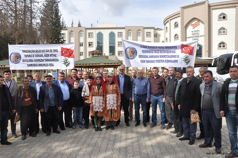 Reyhanlı M. Fatih Tosyalı İmam Hatip Lisesi bahçesinde Dernek ve birlik temsilcileri büyük kazanlarda tarhana çorbası pişirdi. Çorbanın yapılış ve hazırlanışı ile ilgili bilginin verilmesinin ardından konuşan Kahramanmaraş Tarhana Üreticileri ve Sanayi Derneği Başkanı Halit Yeninar, amaçlarının Zeytin Dalı Harekatı’na destek olduğunu söyleyerek, yörenin meşhur tarhana çorbasını asker, polis ve vatandaşlara ikram etmek olduğunu söyledi.