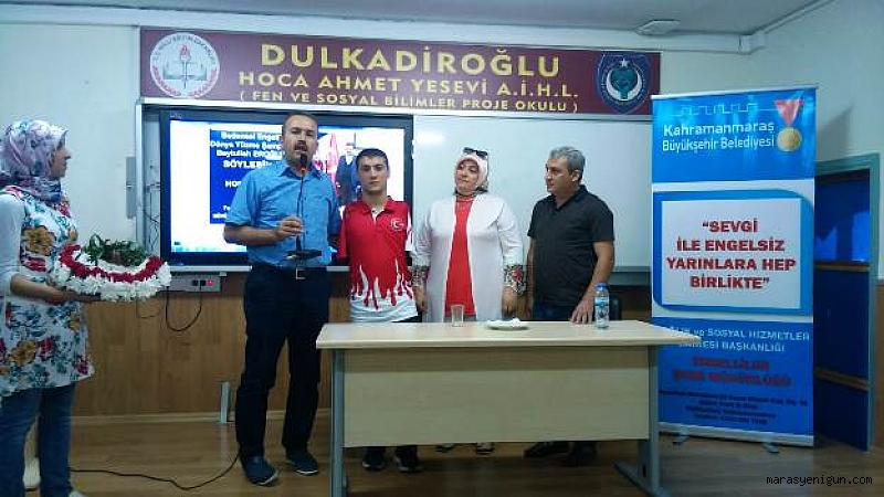 Kahramanmaraş Büyükşehir Belediyesi, Bedensel Engelli Milli Yüzücü Beytullah Eroğlu’nu düzenlediği söyleşi programları ile öğrencilerle buluşturdu.