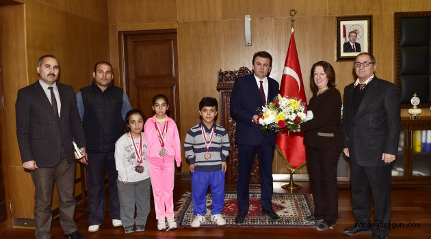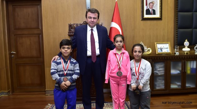\r\n\r\nBaşkanlık makamında gerçekleşen ziyarette Kahramanmaraş Büyükşehir Belediyespor Engelliler Yüzme Takımı yüzücüleri Başkan Erkoç’a çiçek takdim ederek sevinçlerini paylaştılar.