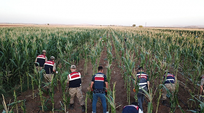 Şanlıurfa'da Suriye sınırına yaklaşık 500 metre mesafede yer alan bir mısır tarlasında 160 bin kök kenevir bitkisi bulundu.