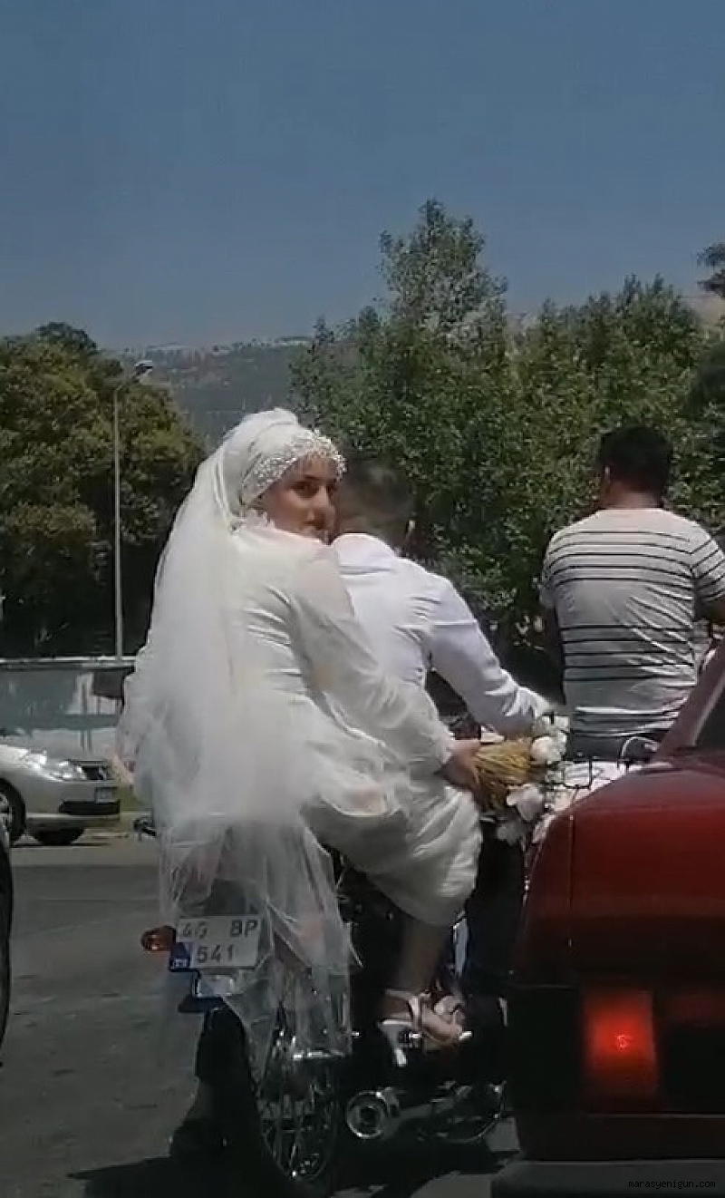 Kahramanmaraş’ta evlenen bir çiftin, gelin arabası yerine motosikleti tercih etmesi dikkat çekti. Çiftin yolculuğu vatandaş kamerasına yansıdı.