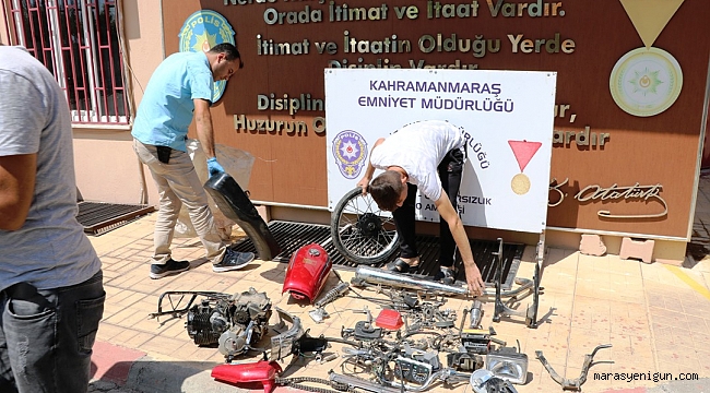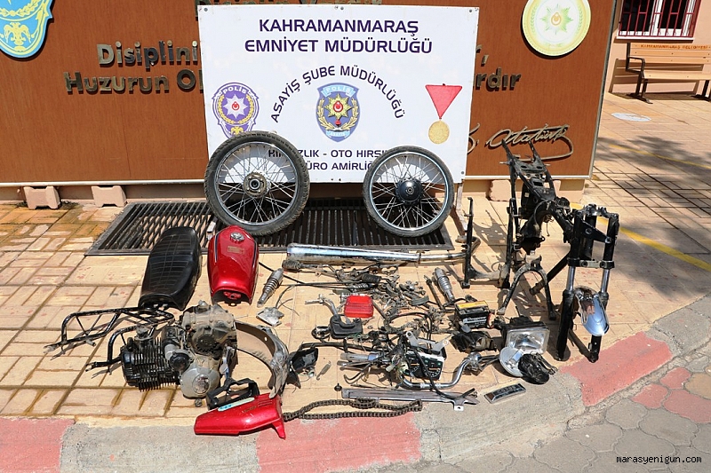 Olay, Onikişubat ilçesinin Kayabaşı Mahallesi'nde meydana geldi. Edinilen bilgiye göre bir evin önünde park halinde olan 27 BLH 02 plakalı motosiklet bilinmeyen kişilerce çalındı. Araştırma yapan polis ekipleri, Onikişubat'ın Yeşilyöre Mahallesi’nde bir evde arama gerçekleştirdi. Evin bahçe kısmında motosiklet parçalanmış halde bulundu. Olayla ilgili tespit edilen 3 şüpheli gözaltına alındı. Motosikleti çalan, satın alan ve parçalayan üç kişiye adli işlem yapıldı.