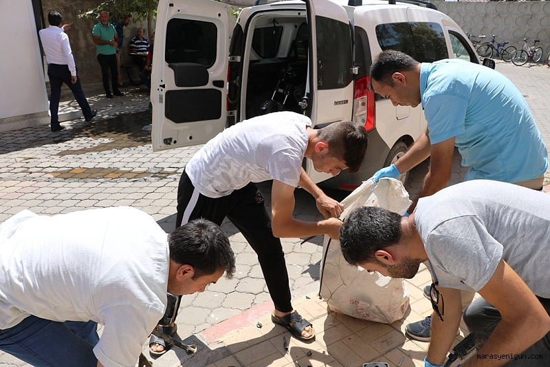 Kahramanmaraş’ta motosikleti çalınan bir kişi polisin bulduğu parçalanmış motosikletini çuvala doldurarak teslim aldı.