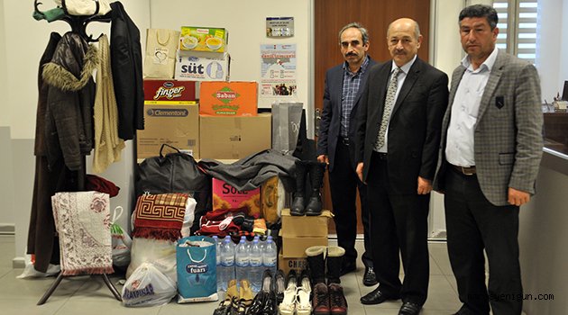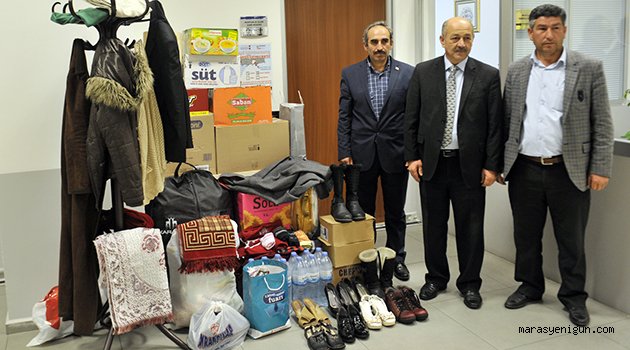 Onikişubat İlçesi Barbaros Mahallesi Muhtarı Mehmet Yayık ve Malik Ejder Mahallesi Muhtarı Davut Ceyhan ile Dulkadiroğlu İlçesi Osmanbey Mahallesi Muhtarı Latif Simsar topladıkları yardımları Bayırbucak Türkmenlerine ulaştırılmak üzere Büyükşehir Belediyesi Muhtarlık İşleri Dairesi Başkanlığı Muhtarlık İşleri Şube Müdürü Muzaffer Türk’e teslim ettiler.