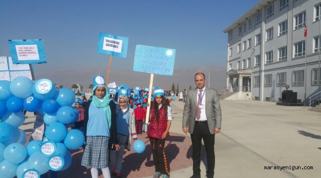 \r\n\r\nHacı osman arıkan ilkokulu ve imam hatip ortaokulu Müdür yardımcısı Seyhan Demirbilek: Hafta boyunca öğrencilere diyabet ve obezite hakkında sunumlar yapıldığını ve sonra aynı bilincin velilerimizde de oluşması adına çeşitli materyaller hazırlanarak yürüyüşü ilgi çekici hale getirdiklerini söyledi.\r\n\r\nYürüyüşe Diyabetin simgesi olan balonlarla hazırlanmış mavi halka yürüyüşün en başında yer alırken ve hazırlanan pankartlar , sloganlar, mavi balon ve şapkalar buna eşlik etti. Yürüyüş esnasında mahalle sakinlerine Hacı osman arıkan ilkokulu ve imam hatip ortaokulu tarafından hazırlanan diyabet broşürleri dağıtıldı.\r\n\r\nMahalle sakinleri tarafından büyük memnuniyetle karşılanan bu yürüyüş 30 dakikalık sürenin ardından okul bahçesinde hazırlanan’’ diyabet farkındalık programı’’yla son buldu.\r\n\r\nHaber: Serkan Ercüment Kuzu\r\n