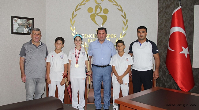 Türkiye Geneli 76 Spor Kulübünden 670 sporcunun katıldığı okçuluk yarışlarında Sporcularımızdan Sare Naz Kabakcı 9-10 yaş kategorinden 1.lik, Ökkeş Emin 8.lik ve İbrahim Hilmi Şahin 32. Lik elde ettiler. Başarılı sporcularımız, Antrenörleri Fatih Küçük ve 1.lik elde eden sporcumuz Sare Naz Kabakcı’nın Babası Mücahit Kabakcı Gençlik ve Spor İl Müdürü Ali İhsan Kabakcı’yı makamında ziyaret ettiler. İl Müdürü KABAKCI sporcularımızı ve antrenörünü ayrı ayrı tebrik ederek sporcularımıza spor malzemesi hediye etti. İl Müdürü Kabakcı burada yaptığı açıklamada şunları söyledi; ”Kahramanmaraş Gençlik ve Spor İl Müdürlüğü bünyesinde 2017 yılında başlattığımız Okçuluk branşı kısa zamanda büyük ilgi gördü. 12 Şubat Kompleksi içerisinde Olimpik Okçuluk Merkezi oluşturduk çok nezih ve kullanışlı bir Okçuluk antrenman salonu oldu. Merkezde Yaz Spor okulları ve 12 ay boyunca yüzlerce çocuğumuz uzman Okçuluk antrenörümüzden eğitim aldı. Sonuç olarak katıldıkları ilk ulusal turnuvadan dereceler aldılar. Şimdi Okullarda yapacağımız Yetenek taraması ile daha fazla çocuğumuza ulaşacağız ve önümüzdeki yıllarda bu çocuklarımız gibi daha birçok yeteneği ülke sporcumuza kazandıracağız. Bu anlamda ilk adımız atan bu Okçularımız elde ettikleri başarılardan dolayı tebrik ediyor ve başarılarının devamını temenni ediyorum.” dedi.