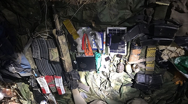 Öldürülen teröristlerin yapılan üst aramalarında 2 adet M16 silah, el bombası, telsiz, şarjör, güneş paneli, tıbbi malzemeler, pil bloğu, giyim malzemeleri, dürbün, şarjörlük ve şemsiye ele geçirildi.