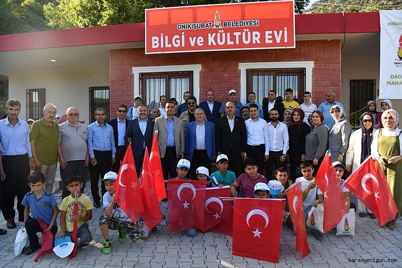 Bu kapsamda Onikişubat Belediyesi tarafından yapımı tamamlanan Hartlap, Cüceli ve Dadağlı Bilgi ve Kültür Evleri açılışına Ak Parti Kahramanmaraş Milletvekili İmran Kılıç,Onikişubat Belediye Başkanı Hanefi Mahçiçek, Ak Parti Onikişubat İlçe Başkanı Fırat Görgel, Meclis Üyeleri, Ak Parti Onikişubat İlçe Teşkilatı, Onikişubat Kadın Kolları ve Gençlik Kolları üyeleri katıldı.Onikişubat Belediye Başkanı Hanefi Mahçiçek’in de katılımıyla Hartlap, Cüceli ve DadağlıBilgi ve Kültür Evlerinin açılışlarında ilk olarak konuşma yapan Ak Parti Onikişubat İlçe Başkanı Fırat Görgel 24 Haziran’da Cumhurbaşkanı Recep Tayyip Erdoğan’ın Kahramanmaraş’a geleceğini müjdeleyerek, Belediye Başkanı Hanefi Mahçiçek’e yaptığı yatırımlar ve kattığı değerlerden dolayı teşekkür etti.Daha sonra açılışlarda konuşma yapan Onikişubat Belediye Başkanı Hanefi Mahçiçek, 96 senede yapılamayan hizmeti göreve geldiği 4 yıl süresince yaptığını belirterek, sadece Hartlap Mahallesine 2 Milyon 991 Bin yatırım yaptıklarını ifade etti.Hartlarp, Cüceli ve Dadağlı mahallelerinin 90’lı yıllarda ne halde olduğunu anlatan Başkan Mahçiçek, göreve geldikten sonra yolların kilit parke yapıldığını, çocukların çamura basmaktan kurtulduğunu belirterek, “şehirde ne varsa Hartlap, Cüceli ve Dadağlı Mahallelerine de aynısını yaptık” ifadelerini kullandı. Bu üç mahalle için toplamda nüfusa göre devlet hazinesinden gelen paranın 2 Milyon olduğunu vurgulayan Başkan Mahçiçek, Onikişubat Belediyesi olarak sadece bu Hartlap, Cüceli ve Dadağlı Mahallelerine 3 katı yatırım yaparak, 7 Milyon harcama yaptıklarını belirtti.Eski zamanlarda imkânların çok kısıtlı olduğuna değinen Mahçiçek, şimdi ki Türkiye’nin durumunu“fevkalade” olarak değerlendirdi.Daha sonra 24 Haziran seçimi ile ilgili değerlendirmelerde bulunan Mahçiçek, herkese mutlaka oy kullanmaları konusunda ricada bulundu.Vatandaşların Bilgi ve Kültür Evlerini ihtiyaç halinde düğün, nişan taziye gibi merasimlerde kullanabileceklerini ifade eden Başkan Mahçiçek, hayırlı olsun dileklerini iletirken, Kadir Gecesinde de herkesin ülke için dua etmesini istedi.Açılışta konuşma yapan Ak Parti Kahramanmaraş Milletvekili İmran Kılıç öncelikle vatandaşın Ramazan Bayramını şimdiden tebrik ederek, devletin sunduğu hizmetlerden bahsetti. Türkiye’nin geçmiş yıllarda yaşadığı zor anlardan bahseden Kılıç, ülkesine sevdalı olduğunu belirtti.Türkiye’nin şimdi ki durumunun çok daha iyi olduğunu belirten Kılıç, Kahramanmaraş’ta yerel yönetimlerinde desteğiyle yapılan yatırımların çok iyi bir noktada olduğunu belirterek, devam eden hizmetleri anlattı.Kılıç konuşmasında Onikişubat Belediye Başkanı Hanefi Mahçiçek’inyapımını gerçekleştirdiği 7 güzel adamın şehrine 7 İmam Hatip Okulu projesine de değinerek, yaptığı yatırımlardan dolayı teşekkür etti.Kılıç, Başkan Mahçiçek’in şehre ulaşım ve prestij sağlayacak projeleri olduğunu ifade ederek, değerlendirebileceklerini de belirtti.24 Haziran seçimlerinin önemini de vurgulayan Kılıç, Ak Parti ve Cumhurbaşkanı Recep Tayyip Erdoğan’a halkın vereceği destekten hiç şüphesi olmadığını,belirterek konuşmalarını sonlandırdı.Bilgi ve Kültür Evleri açılışları gerçekleştirilirken, mahalle sakinlerineOnikişubat Belediyesi ekipleri tarafından şal ve mutfak önlüğü dağıtıldı.