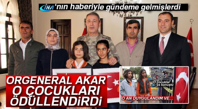 Genelkurmay Başkanı Orgeneral Hulusi Akar, programları dahilinde kuvvet komutanları ile birlikte Elazığ’a geldi. Vali Çetin Oktay Kaldırım tarafından karşılanan Genelkurmay Başkanı Akar, valilik önünde polis mangasını selamladı. Şeref defterini imzaladıktan sonra Vali Kaldırım'la bir süre makamda görüşen Akar, daha sonra Türk bayrağını öperken güvenlik kamerası tarafından görüntülenen ve İhlas Haber Ajansı'nın gündeme taşıdığı amca çocukları 11 yaşındaki Elif ve Rabia Aktaş'la görüştü.Çocuklarla sohbet eden ve hediyeler veren Akar, ailelerine de, "Tebrik ediyorum, çocuklarınızı çok iyi yetiştirmişsiniz" dedi.Elazığ'daki temaslarını tamamlayan Akar, daha sonra kentten kuvvet komutanları ile birlikte ayrıldı.Çocukların bayrak sevgisi duygulandırdı