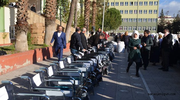 \r\n\r\nAnadolu Kız İmam-Hatip Lisesi Okul Müdürü İsmail Direk ise, “Bugün burada 3 Aralık dünya Engelliler Gününden 1 gün sonra Tekerlekli Sandalyeye muhtaç olan vatandaşları sandalyeleriyle buluşturuyoruz. Okul kantincimiz Kadir Gülmez ve siz değerli öğrencilerin katkılarıyla mavi kapaklar toplanarak tekerlekli sandalyeye dönüştüler, katkı sağlayan herkese teşekkür ediyorum” dedi. Program sonunda ihtiyaç sahiplerine öğrenciler eşliğinde tekerlekli sandalyeler verildi.