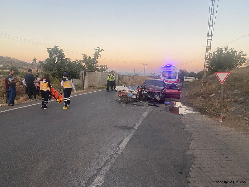 Kahramanmaraş’ın Türkoğlu İlçesinde otomobil ile sepetli motosikletin çarpışması sonucu meydana gelen trafik kazasında 2 kişi yaralandı.