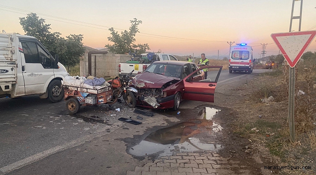 Edinilen bilgiye göre, İlçeye bağlı Uzunsöğüt Mahallesinde Adem Ç. (48) idaresindeki 01 BM 475 plakalı otomobil ile seyir halinde iken Hopuriçi mevkiinde karşı yönden gelen Mustafa Ç. (53) yönetimindeki 46 FF 234 plakalı sebepli motosikletle kafa kafaya çarpıştı. Kazada çarpmanın etkisiyle motosiklet sürücüsü ile yanında bulunan Döne Ç. (56) yaralandı. İhbar üzerine kaza yerine gelen 112 acil servis ekiplerince Türkoğlu Devlet Hastanesine kaldırılan yaralıların, sağlık durumlarının iyi olduğu öğrenildi.Kazayla ilgili inceleme sürüyor.