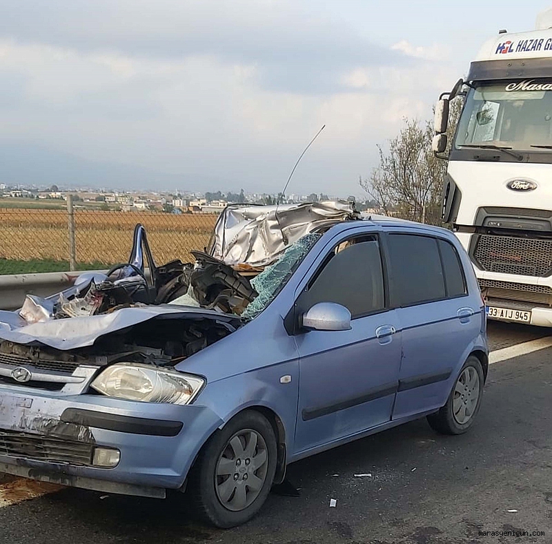 Osmaniye’de otomobilin tıra arkadan çarpması sonucu yaşanan trafik kazasında 2 kişi öldü, 2 kişi yaralandı.Edinilen bilgiye göre, Kaza E - 90 otoyolu Osmaniye turnikeleri yakınlarında meydana geldi. İddiaya göre, Gaziantep yönüne seyir halindeki Hasan Balcı’nın kullandığı 34 CIC 701 plakalı otomobil, aynı yöne giden Erdal C. idaresindeki 41 UJ 370 plakalı TIR’a arkadan çarptı.Kazayı gören diğer sürücülerin haber vermesi üzerine bölgeye sağlık ve kurtarma ekipleri sevk edildi. Araçta sıkışan sürücü Hasan Balcı ile yanındaki yolcu Ali Yapan, itfaiye ekipleri tarafından çıkarıldı.Sağlık ekiplerince yapılan ilk müdahalenin ardından kentteki çeşitli hastanelere kaldırılan yaralılardan Ali Yapan (50) ve Hasan Balcı (51) kurtarılamayarak yaşamını yitirdi. Arka koltukta bulunan A.Y (11) ve Ayşegül Yapan’ın (45) ise kaldırıldıkları hastanede tedavi altına alındıkları, durumlarının iyi olduğu öğrenildi.Cenazeler Osmaniye Devlet Hastanesi morguna konulurken, TIR şoförü Erdal C. gözaltına alındı. Polis, kazayla ilgili soruşturma başlattı.