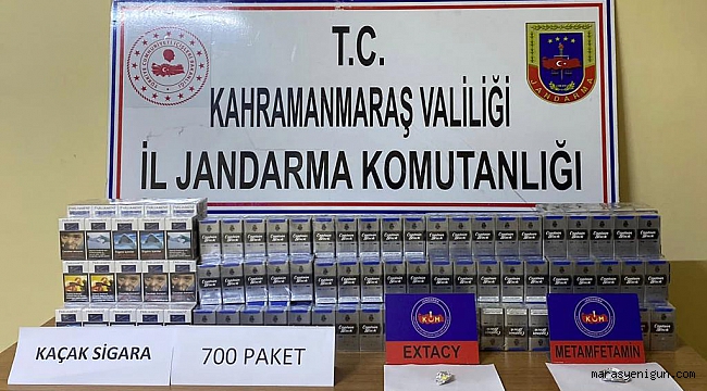 Kahramanmaraş’ın Pazarcık İlçesinde şüphe üzerine durdurulan bir otomobilde yapılan aramada uyuşturucu ve kaçak sigara bulundu.Edinilen bilgiye göre, İlçeye bağlı Narlı Mahallesi kontrol noktasında jandarma ekiplerince şüphe üzerine bir otomobil durduruldu. Jandarma ekipleri tarafından otomobilde ve Y.E.K. (30) üst aramasında çeşitli miktarlarda uyuşturucu madde ile 700 paket kaçak sigara bulundu. Kaçak sigara ve uyuşturucu maddelere el koyan ekipler, Y.E.K hakkında yasal işlem başlattı.