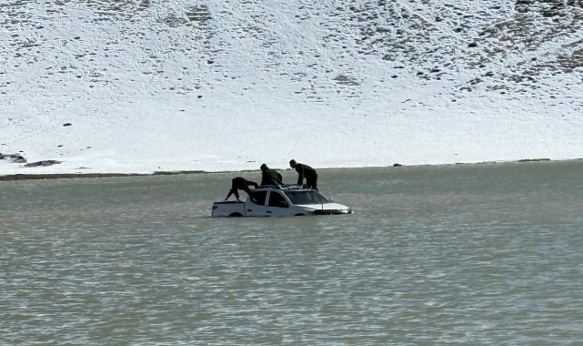 Kahramanmaraş'ta Ahır Dağı eteklerinde bulunan Karagöl'e araçlarıyla giren 3 kişi, gölde mahsur kaldı.