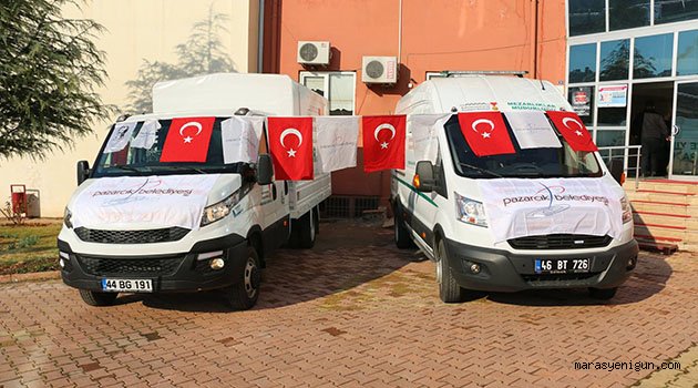 \r\n\r\nKahramanmaraş Büyük Şehir Belediyesi ve Pazarcık Belediyesi, yatırım ve hizmetlerin yanı sıra fırsat buldukça hizmet kalitesini artırmaya yönelik bünyesinde bulunan araçları yenilemeye devam ediyor. Bu kapsamda belediye tarafından Kahramanmaraş Büyük Şehir Belediye Başkanı Fatih Mehmet Erkoç'un Girişimleri ile Pazarcık İlçesine cenaze yıkama ve Çadır ve Personel Taşıma işlerinde kullanılmak üzere aracı alındı.\r\n\r\nCenaze nakil aracını belediye araç parkuruna kazandıran Başkan Bozdağ, bir ilke daha imza atarak ilçeye cenaze yıkama aracı kazandırdı. Cenaze yıkama ve bekletme işlemlerinde vatandaşlara daha iyi hizmet vermek için cenaze yıkama aracı alan belediye vefat eden vatandaşlara son görevini en iyi şekilde yapmayı hedefliyor.\r\n\r\nPazarcık Belediye Başkanı Yakup Hamdi Bozdağ Konuşmasında Kahramanmaraş Büyük Şehir Belediye Başkanı Fatih Mehmet Erkoç'a Pazarcık İlçesine Göndermiş olduğu araçlardan dolayı teşekkürlerini ifade etti.\r\n\r\nYeni alınan cenaze yıkama aracını inceleyen Pazarcık Belediye Başkanı Yakup Hamdi Bozdağ; ``Belediyemizin kısıtlı imkânlarına rağmen hem borç ödüyoruz, hem hizmet veriyoruz, hem de yatırım yapıyoruz. Belediyemiz araç parkuruna kazandırdığımız cenaze yıkama aracı ile vefat eden vatandaşlarımıza son görevimizi layıkıyla yerine getirmeye çalışıyoruz. Şehir dışında vefat eden vatandaşlarımızın cenazelerinin naklini mevcut aracımızla gerçekleştiremiyor, özellikle yaz aylarında büyük sorun yaşıyorduk. Bu sorunu yeni aldığımız soğutmalı nakil aracımızla çözdük. Kullanımda olan cenaze yıkama aracımız dar sokaklara giremiyordu. Belediyemize yeni kazandırdığımız cenaze yıkama aracıyla vatandaşlarımız cenazelerini aracımızda bekletebilecek ve dar sokaklarda bile vatandaşımızın kapısının önüne kadar gidecek aracımızda yıkama işlemleri gerçekleştirilebilecek. Şunu unutmamalıyız ki ölüsüne saygısı olmayanın dirisine saygısı olmaz ` dedi.\r\n\r\nVatandaşlarımıza daha kaliteli ve iyi hizmet edebilmek adına yapmış olduğumuz çalışmalarla belediyemizin araç filosunu yenilemeye devam ediyoruz. Belediyemiz bünyesine katmış olduğumuz bu 2 yeni araçla birlikte mevcut araçlarımız vatandaşlarımıza sunacağımız hizmetlerin aksamaması noktasında yeterli seviyeye ulaşmış bulunmaktadır. Tabi günümüz teknoloji günüdür. İlerleyen çağa bizde ayak uyduruyoruz. Belediyemizin acil ihtiyacı bulunan ve yenilenmesi gereken bir araca şuan itibariyle ihtiyacımız kalmamıştır. Ama ilerleyen zamanda ihtiyaç duyulduğu takdirde yeni araçlarda alınabilir. Şuan için vatandaşlarımıza en iyi hizmeti sunabilmemiz için araçlarımız yeterli bir seviyeye gelmiştir. Tabii ki bölgemiz soğuk, bu bölgede kış şartlarında vefat eden vatandaşlarımızın ailelerine yardımcı olabilmek için, daha rasyonel faaliyetlerde bulunabilmek için eski olan cenaze yıkama aracımızı yeniledik.\r\n\r\n \r\n\r\n \r\n\r\n \r\n