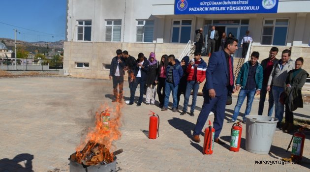 Kahramanmaraş Sütçü İmam Üniversitesi (KSÜ) Pazarcık Meslek Yüksekokulunda ‘’Afet Bilinci Eğitimi’’ kapsamında, KSÜ Sivil Savunma Birimi tarafından ''Acil Durum ve Afet Planı'' konulu eğitim verildi.