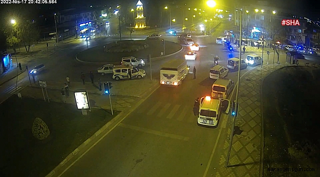 Kahramanmaraş’ta kontrol noktasından kaçmaya başlayan sonrasında ekip aracına çarparak bir polis memurunun yaralanmasına neden olan o sürücünün kaza anı güvenlik kamerasınca görüntülendi.Dün akşam, Kahramanmaraş-Adana yolu üzerinde polis uygulaması noktasında polis ekipleri 06 GE 9422 plakalı hafif ticari araca dur ihtarına bulunmuş, ihtarına rağmen kaçan sürücü kaçmaya başlamıştı. Yaşanan kovalamaca sırasında Namık Kemal Mahallesi Dr. Mustafabey Bulvarı üzerinde sıkıştırılan sürücü, ekip otosuna çarparak durdu.Kazada ekip otosuna bulunan 1 polis memuru hafif yaralanırken, yabancı uyruklu olduğu belirlenen sürücü gözaltına alınmıştı.Uygulama noktasından kaçan sürücünün aracında uyuşturucu madde bulunması nedeniyle kaçtığı iddia edildi.Çevredeki güvenlik kameraları kazayı anbean kaydetti. Görüntülerde, hız kesmeyen şüpheli aracın, polis otosuna çarptığı görülüyor.