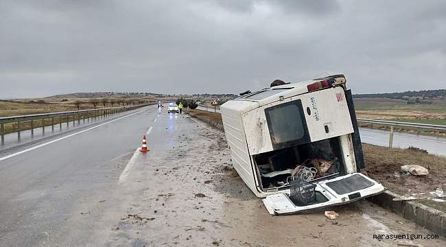 Kahramanmaraş’ta seyir halinde iken yağmur nedeniyle kayganlaşan yolda direksiyon hakimiyetini kaybeden minibüs refüje çarpması sonucu 6 kişi yaralandı.