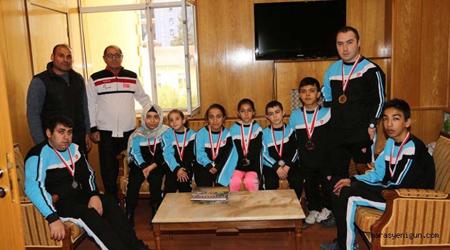 Vali Güvençer, Gençlik Hizmetleri ve Spor İl Müdürü Ali İhsan Kabakçı, Yüzme Antrenörleri, Kahramanmaraş Engelliler Kulübü Sporcusu S8 kategorisinde 100 metre Kurbağalama Türkiye Şampiyonu ve 50 metre Serbest Türkiye 2’ncisi Fuat Özsaatçi, S9 kategorisinde, 100 Türkiye 2’ncisi ve 400 metre Serbest Türkiye 3’üncüsü Ahmet Karagün, S7 kategorisinde 100 metre Türkiye 3’üncüsü Ali Yılmaz Karçin, Kahramanmaraş Büyükşehir Belediye Spor Kulübü Bedensel Engelliler Yüzme Takımı Sporcularından S6 kategorisinde, 100 metre Sırtüstü Türkiye Şampiyonu, 50 metre Kelebek Türkiye 2’ncisi, 100 metre Kurbağalama Türkiye 2’ncisi ve 50 metre Serbest Türkiye 3’üncüsü Sevilay Öztürk, S6 kategorisinde, 100 metre Kurbağalama Türkiye 3’üncüsü ve 200 metre Ferdi Karışık Türkiye 2’ncisi Samet Furkan Madsar ve S6 kategorisinde 100 metre Kurbağalama Türkiye 3’üncüsü, 100 metre Sırtüstü Türkiye 2’ncisi ve 400 metre Serbest Türkiye 2’ncisi Mislina Balkarlı’yı makamında kabul etti.