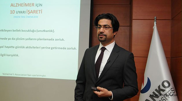 \r\n\r\nSANKO Üniversitesi, ABD’de akademik çalışmalarını sürdüren Türk bilim insanlarını her ay konuk ederek düzenlediği halka açık sağlık konferanslarına yenisini ekledi. SANKO Üniversitesi’nin bu ayki konuğu olan ABD Northwestern Üniversitesi, Feinberg Tıp Fakültesi Alzheimer Hastalığı Merkezi’nden Dr. Mustafa Seçkin, “Alzheimer Hastalığı (Bunama) Nedir, Engellenebilir mi?” konusunu anlattı.\r\n\r\nDr. Seçkin, Özel Sani Konukoğlu Hastanesi Toplantı Salonu’nda gerçekleştirilen konferansta, dünya genelinde, alzheimer hastalığının neden olduğu demansın (bunama) milyonlarca insanı etkilediğini anımsattı.\r\n\r\nDİKKAT BOZUKLUĞU…\r\n\r\n“Alzheimer hastalığı en çok 65 yaş üzerindeki bireylerde görülür ve beyin hücrelerinin (nöronların) ilerleyici hasarı (nörodejenerasyon) ile karakterizedir” diyen Dr. Seçkin, şöyle devam etti:\r\n\r\n“Diğer gelişmiş ülkelerde olduğu gibi, ülkemizde de yaşam süresinin giderek uzaması alzheimer hastalığı için risk taşıyan yaşlı nüfusun da artmasına neden oluyor. Hastalık çoğunlukla bellek bozukluğu şeklinde görülse de, Alzheimer hastalığının beyin fonksiyonları üzerindeki etkileri bellek bozukluğunun ötesindedir. Genellikle hastaların dil fonksiyonları ve iletişim yetenekleri de önemli derecede etkilenmektedir. Alzheimer hastalarında dikkat bozukluğunun yanında, davranış ve yön bulma becerilerinde de bozukluk görülebilir.”\r\n\r\nHASTALIĞIN TANISI\r\n\r\nDr. Seçkin, alzheimer hastalığının erken tanısının, diğer tüm kronik hastalıklarda olduğu gibi, hastalığın ilerleyişinin yavaşlatılması, hasta ve hastanın bakımından sorumlu aile bireylerinin yaşam kalitelerinin korunması açısından büyük önem taşıdığına dikkat çekerek, şunları kaydetti:\r\n\r\n“Bu nedenle, ilerleyen yaş ile birlikte, bahsettiğimiz belirtilerden bir veya birkaçının bir arada görülmesi durumunda, bireylerin vakit kaybetmeksizin bir nöroloji hekimi tarafından değerlendirilmeleri gerekir. Alzheimer hastalığına ait belirtiler, ileri yaşlarda ortaya çıkmakla beraber beyindeki hücreler ve hücreler arası bağlantılar (sinapslar) erken yaşlarda etkilenmeye başlar. Beyin sağlığını korumaya yönelik alınacak önlemler ve genç yaşlardan itibaren egzersiz, sağlıklı beslenme, düzenli uyku gibi sağlıklı yaşam tarzının benimsenmesi, bireylerin alzheimer hastalığından daha az etkilenmelerine yardımcı olacaktır.”\r\n\r\nYaşlılıkta bunamanın kaçınılmaz bir son olmadığına vurgu yapan Dr. Seçkin, “Uzun bir hayat ve sağlıklı yaşlanma ancak beyin sağlığının da diğer hayati organlar gibi korunması ile mümkün olabilir” diyerek sözlerini tamamladı.\r\n\r\nKatılımcıların sorularını da yanıtlayan Dr. Seçkin’e, SANKO Üniversitesi Rektör Yardımcısı Prof. Dr. Güner Dağlı, verdiği bilgiler için teşekkür ederek, hediye taktim etti.\r\n\r\n \r\n