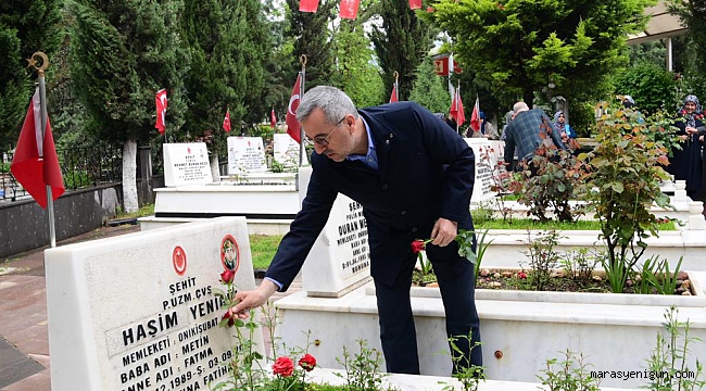 Ramazan Bayramı arifesi şehitleri kabirleri başında dualarla yâd eden Başkan Güngör, “Bağımsızlığını tüm mukaddes değerlerin üzerinde tutan ve vatanı uğruna canını feda eden tüm şehitlerimizi bir kez daha rahmet ve minnetle anıyoruz” dedi. Kahramanmaraş Büyükşehir Belediye Başkanı Hayrettin Güngör, Ramazan Bayramı arifesi Şeyh Adil Mezarlığı’ndaki şehitlikte düzenlenen anma programına katıldı. Vali Ömer Faruk Coşkun, Garnizon Komutanı Tuğgeneral Emin Mehmet Terzioğlu, ilçe belediye başkanları, kurum ve kuruluş müdürleri, STK temsilcileri, şehit aileleri ve gazilerin de yer aldığı programda şehitler Kur’an-ı Kerim tilaveti ve dualarla yâd edildi. Şehitleri kabirleri başında ziyaret ederek mezarlarına karanfil bırakan Güngör, şehit yakınları ile de bir araya geldi.Birliğimiz Daim OlsunVatanı uğruna canını feda eden tüm şehitleri rahmet ve minnetle yâd eden Başkan Hayrettin Güngör, “Ramazan Bayramı arifesi şehitliğimizi ziyaret ederek aziz şehitlerimizi kabirleri başında dualarla yâd ettik. Bu mukaddes toprakları bizlere vatan kılan tüm şehitlerimize, gazilerimize ve aziz ecdadımıza minnet ve şükranlarımızı sunuyoruz. Bağımsızlığını tüm mukaddes değerlerin üzerinde tutan ve vatanı uğruna canını feda eden tüm şehitlerimizi bir kez daha rahmet ve minnetle anıyoruz. Rabbim, vatanımızı bölmek isteyen şer odaklarına fırsat vermesin. Birliğimiz ve dirliğimiz daim olsun” diye konuştu.