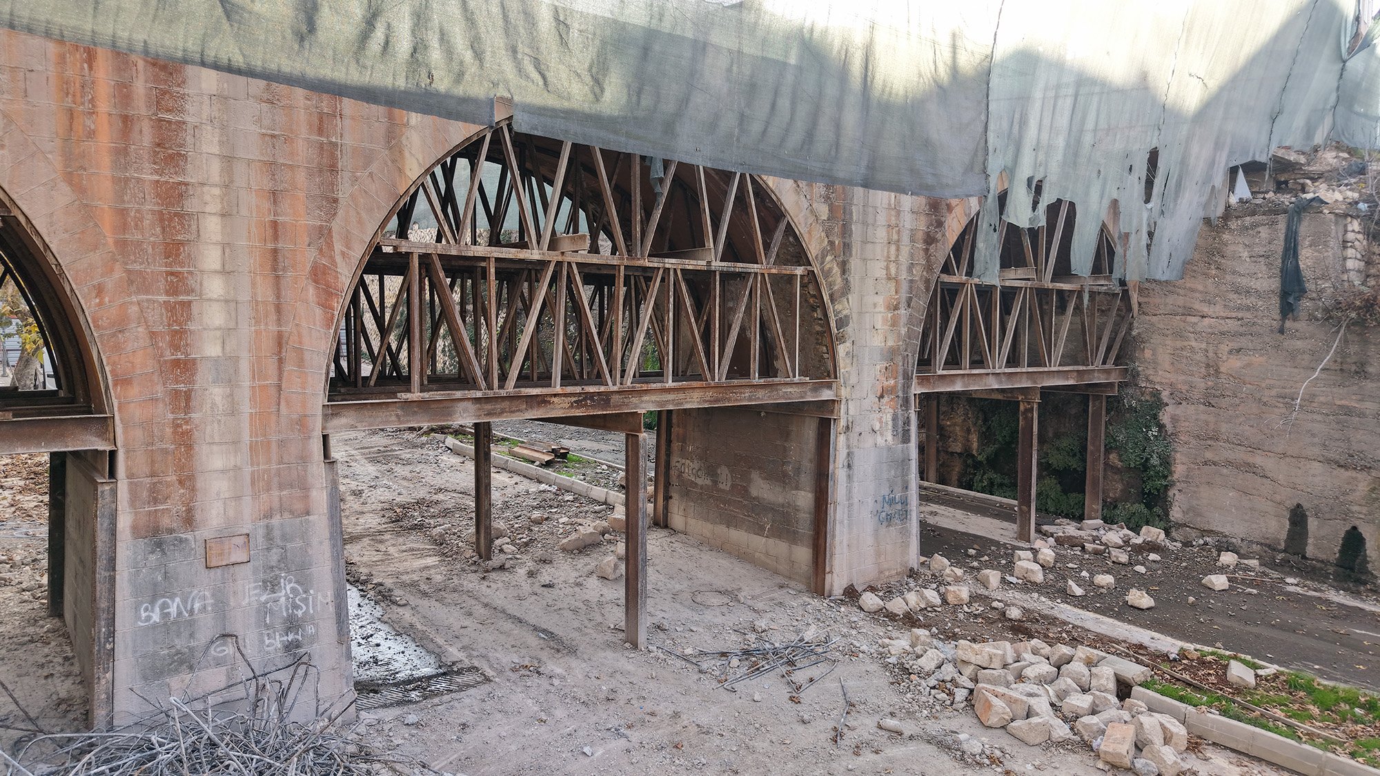 Şehrin tarihine tanıklık eden ve 6 Şubat depremlerinde hasar gören Kanlıdere Köprüsü’nde restorasyon çalışmaları sürüyor. Başkan Görgel, “Kanlıdere Köprüsü, şehrimizin geçmişine ışık tutan çok kıymetli bir yapı.Bu nedenle restorasyon süreci büyük bir hassasiyetle yürütülüyor.Amacımız, bu kıymetli eseri gelecek nesillere güvenle aktarabilmek” dedi.