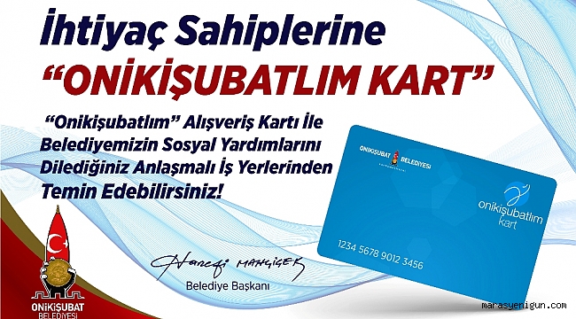 Onikişubat Belediyesi, sosyal belediyecilikte bir yeniliğe daha imza attı. İlçede yaşayan ihtiyaç sahibi vatandaşların alışverişlerinde kullanabileceği “Onikişubatlım Kart” uygulaması başladı.Sosyal Yardım İşleri Müdürlüğü uhdesinde yürütülen çalışma kapsamında,alan taraması yapılarak ihtiyaç sahibi aileler belirlendi. Proje ile 20 bin vatandaş için “Onikişubatlım Kart” çıkartıldı. Her bir karta 120 TL’lik kredi yüklenirken, kartlarını alan vatandaşlar, anlaşmalı mağazalardan temel ihtiyaçları olan gıda ve temizlik ürünlerini alabilecekler. “Onikişubatlım Kartı” tekel ve kozmetik gibi ürünlerde geçerli olmayacak.Onikişubat Belediye Başkanı Hanefi Mahçiçek, konuya ilişkin yaptığı açıklamada sosyal belediyecilikte örnek bir çalışma hayata geçirdiklerini söyledi. Belediye olarak, sosyal yardımlar noktasında mahremiyete büyük önem verdiklerini söyleyen Başkan Mahçiçek, şunları kaydetti:“Belediye olarak hiçbir vatandaşımızın incinmesini, gururunun kırılmasını istemiyoruz. ‘Sağ elin verdiğini sol el görmesin’ diyen bir inancın mensupları olarak da ‘Onikişubatlım Kart’ uygulamasını başlattık. Belirlenen ihtiyaç sahibi vatandaşlarımız, bu kart ile anlaşmalı olduğumuz mağazalardan ihtiyaçlarını karşılayabilecek vealışverişlerini yapabilecekler. Mübarek Ramazan ayı dolayısıyla yaptığımız gıda yardımlarını da bu statüde devam ettirmiş olacağız. Bu vesileyle tüm vatandaşlarımın Rahmet ayı Ramazan-ı Şerif’ini tebrik ediyor, aileleri ve sevdikleriyle sağlık, mutluluk ve huzur dolu uzun ömürler diliyorum.”