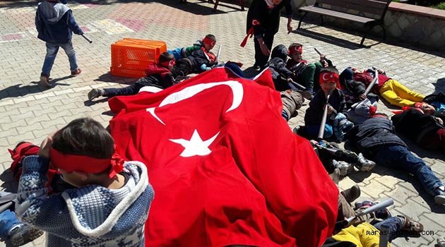 \r\n\r\nÇanakkale Zaferinin 101 yılı dolayısıyla yapılan kutlama etkinliklerinde öğrenciler o sahneleri canlandırarak zafer ruhu tattılar.\r\n\r\nEtkinlikle ilgili konuşan Okul Müdürü Mustafa Mutlu KURT: “Bugün Çanakkale Zaferinin yıldönümü dolayısıyla öğretmenlerimiz ve öğrencilerimizle güzel bir etkinliğe imza attık. Etkinlikte emeği geçen herkese teşekkür eder, Çanakkale Şehitlerimiz başta olmakla tüm şehitlerimizi rahmet ve minnetle anıyorum.”-dedi\r\n\r\n \r\n\r\nEtkinlikte öğrenciler tarafından yapılan Çanakkale Anıtı ve Tank dikkat çekti.\r\n\r\n \r\n