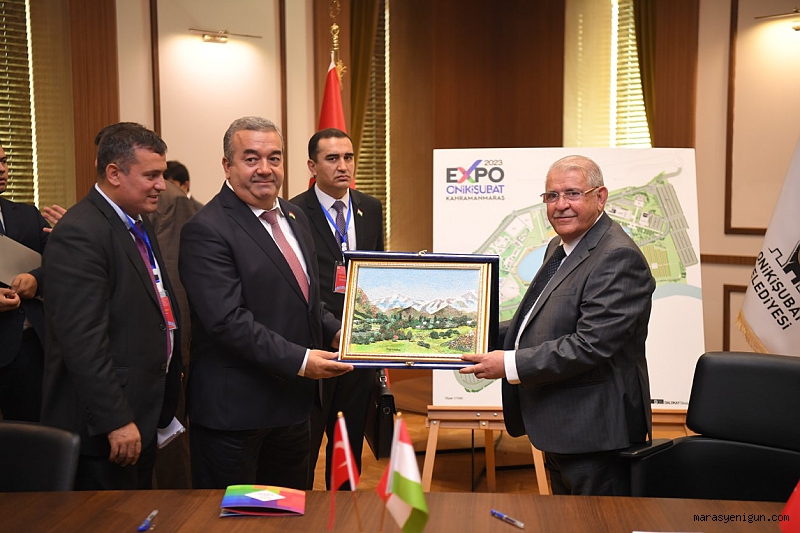 EXPO 2023’e katılım protokolü imzalamak üzere Kahramanmaraş’a gelen Tacikistan Hatlon Bölge Valisi QurbonHakimzoda ve Tacikistan Ankara Büyükelçisi AshrafjonGulov öncülüğündeki heyet, Onikişubat Belediye Başkanı Hanefi Mahçiçek, Ticaret ve Sanayi Odası ile MADO Dondurma Fabrikası’nı ziyaret etti.Onikişubat Belediyesi ev sahipliğinde 23 Nisan 2023’de açılışı gerçekleştirilecek olan EXPO 2023’ün uluslararası katılımcı ülkelerinden Kahramanmaraş’a ziyaretler devam ediyor. Azerbaycan, Gürcistan, Cibuti, Karadağ ve Japonya’nın ardından Tacikastan Cumhuriyeti’nden yetkililer kente gelerek, EXPO 2023 katılım protokolünü imzaladı.Tacikistan HatlonBölge Valisi QurbonHakimzoda ve Tacikistan Ankara Büyükelçisi AshrafjonGulov öncülüğündeki heyet ilk olarak Onikişubat Belediye Başkanı Hanefi Mahçiçek’i ziyaret etti. EXPO 2023 Rekreasyon Alanı’nda gelinen son noktayı ve hedeflerini tanıtım filmi eşliğinde anlatan Başkan Mahçiçek, Tacikistan Cumhuriyeti’ni EXPO 2023’de görmekten mutluluk duyacaklarını belirtti.Başkan Mahçiçek, ziyaret sonrası misafirlerine EXPO 2023 mozaiği ve sembol çiçeği seçilen sümbül motifini takdim ederken, Tacikistan HatlonBölge Valisi QurbonHakimzoda da Başkan Mahçiçek’e Tacikistan’ın yöresel cübbesini giydirerek, tablo hediye etti.“Tacikistan’ın EXPO 2023’de olmasından onur duyacağız”Burada açıklamalarda bulunan Onikişubat Belediye Başkanı Hanefi Mahçiçek, , Tacikistan Cumhuriyeti’nin EXPO 2023’de yer almasının önemine dikkat çekerek, “Tacikistan’dan gelerek bizleri onurlandıran çok değerli Tacikistan HatlonBölge Valisi QurbonHakimzoda ve Tacikistan Ankara Büyükelçisi AshrafjonGulov ile beraberindeki heyete teşekkürlerimi sunuyorum. Kendilerini ve heyetlerini Kahramanmaraş’ta misafir etmekten son derece mutlu olduğumu belirtmek istiyorum. 2023’ün Nisan ayında açılışını gerçekleştireceğimiz EXPO 2023’e katılacak olmaları sebebiyle teşekkür ediyorum. Bizim öngörülerimize göre 40 ile 50 ülkenin, yurt içinden de çok sayıda yerel yönetimlerin ve kurumlarımızın katılacağı EXPO 2023’de kendileriyle beraber olmaktan onur duyacağız” ifadelerini kullandı.“İlişkilerimiz Tacikistan’ın EXPO 2023’e katılımlarıyla çok daha ileri düzeye çıkacaktır”Türkiye ve Tacikistan’ın sosyal, kültürel ve ekonomik anlamda önemli işbirliği içerisinde olduğuna da vurgu yapan Başkan Mahçiçek, ülkeler arası işbirliğinin EXPO 2023’le çok daha ileri seviyeye çıkacağını belirterek, “Tacikistan’la ülkemizin ekonomiden tutun da kültürel alanlar başta olmak üzere her alanda çok değerli münasebetleri var. Bu ilişkiler, Tacikistan’ın EXPO 2023’e katılımlarıyla çok daha ileri düzeye çıkacaktır. İnanıyorum ki, EXPO 2023 hem Tacikistan’la hem de diğer Türki devletlerle aramızdaki ilişkileri çok daha güçlendirecektir. Kahramanmaraş Ticaret ve Sanayi Odası’nda imzalanan protokolle ortak yatırım alanları için iş birliği içerisinde çalışmalar yapılacaktır. Dolayısıyla zaten var olan ekonomik ilişkilerimiz, Kahramanmaraş Ticaret ve Sanayi Odası ile daha üst seviyelere çıkacaktır. Bu kabil uluslararası projeler, ülkeler arasındaki ilişkilerin gelişmesine çok ciddi katkıda bulunacak ve daha ileri taşınmasına vesile olacaktır diye düşünüyorum. Sayın Vali, büyükelçi ve beraberindeki heyete bir kez daha hoş geldiniz diyorum, kendilerine Kahramanmaraş olarak sevgilerimizi, saygılarımızı ve muhabbetlerimizi sunuyorum” şeklinde konuştu.“Sosyal ve ekonomik işbirliğini güçlendirmeye çalışıyoruz”Tacikistan Hatlon Bölge Valisi QurbonHakimzoda da Kahramanmaraş’ta olmaktan duyduğu memnuniyeti dile getirerek, Başkan Mahçiçek’e misafirperverliği için teşekkür etti. Hakimzoda, “Tacikistan ve Türkiye Cumhuriyeti, karşılıklı anlayışı, saygı ve sevgiyi gözeten, dostane ilişkilere sahiptir. Tacikistan Cumhurbaşkanı İmamali Rahman ve Türkiye Cumhuriyeti Cumhurbaşkanı Recep Tayyip Erdoğan, iki ülkenin ortak çıkarları ve faaliyetlerini büyük bir hassasiyetle geliştiriyor. Tacikistan ve Türkiye’nin müşterek şirketleriyle 84’den fazla işbirliği var. Bu bağlamda Hatlon Bölgesi olarak Cumhurbaşkanımızİmamali Rahman’ın talimatlarını dikkate alarak Türkiye’nin çeşitli bölgelerinin sosyal ve ekonomik işbirliğini güçlendirmeye çalışıyoruz. Her iki ülkemizin de liderleri ticari ve sosyal işbirliğini geliştirmek için gereken güveni bize verdiler” dedi.“EXPO 2023’e biz de katılacağız ve her türlü desteği vereceğiz”Türkiye ve Tacikistan arasındaki ilişkilerin EXPO 2023’e ile daha da artacağını vurgulayan Hatlon Bölge Valisi QurbonHakimzoda, sözlerine şu şekilde devam etti, “Bu anlamda EXPO 2023’e biz de katılacağız ve müşterek işbirliğimizi devam ettirmek için her türlü desteği vereceğiz. 2 gün Gaziantep’te kaldık, bugün Kahramanmaraş’tayız. Maksadımız ve niyetimiz müşterek işbirliğini ileri düzeye çıkarmak. Genç bir ülke olarak istiklal şehri olduğunu öğrendiğimiz Kahramanmaraş’ta olmaktan ve bizlere gösterdiğiniz ilgiden dolayı teşekkür ediyorum. Hatlon Bölgesi, Tacikistan’ın en büyük bölgesidir ve 3 milyondan fazla nüfusu vardır. Bu ziyaretlerimizin iki ülkenin iş birliğinin daha da geliştirmesi, ortak yatırımların oluşturulması ve Türk sermayesinin cazibesiyle tanışmak için burada olmaktan mutluyum. EXPO 2023’de yer alacak olmamızı da çok değerli görüyorum, Belediye Başkanımız Hanefi Mahçiçek’e teşekkür ediyorum.”KMTSO’da protokol imzalandı, MADO Dondurma Fabrikası gezildi Tacikistan heyeti Başkan Mahçiçek’in öncülüğünde Kahramanmaraş Ticaret ve Sanayi Odası’nı (KMTSOO) ziyaret ederek, KMTSO Başka