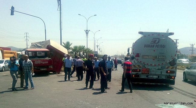 Edinilen bilgiye göre kaza, Kahramanmaraş-Adana karayolu Otogar kavşağında meydana geldi. Tanker sürücüsü Hamza Okulu’nun kullandığı 33 AZJ 13 plakalı tanker, Mersin'e gitmek isterken otogar kavşağına geldiğinde kırmızı ışıkta geçti. O anda servis yolundan geçerek Kahramanmaraş istikametine gitmek isteyen Raşit Çetin Aslan idaresindeki 46 LS 532 plakalı kamyonete çarptı. Çarpmanın etkisiyle ters dönen kamyonet refüje çarparak durabildi. Kazanın etkisiyle kamyonet içerisindeki sürücü ve muavini yola fırlayarak yaralandı.