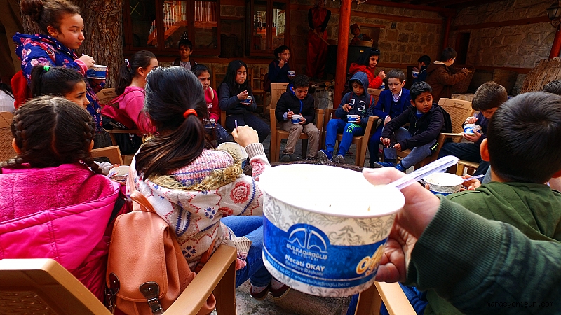 Öğretmenleri ve müze yetkililerinin bilgilendirdiği öğrencilere Mutfak Müzesi’nde çorba ikram edildi.