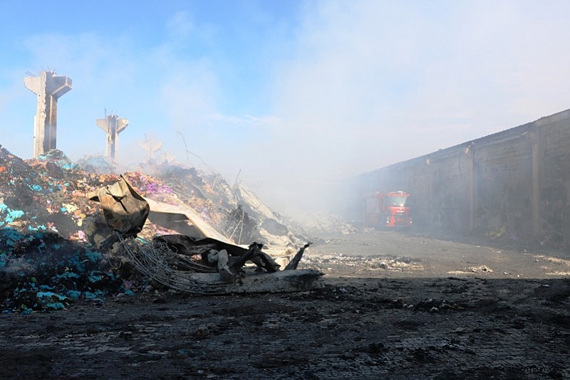 Gün doğduğunda ise yangından geriye fabrikanın enkazı ortaya çıktı.