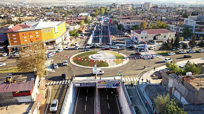 90 günlük rekor bir süreyle yapımı tamamlanan Tevfik Kadıoğlu Köprülü Kavşağı düzenlenen törenle trafiğe açıldı. Başkan Hayrettin Güngör, “Her alanda olduğu gibi ulaşım alanında da şehrimizin en az 50 yıl ilerisini görerek projelerimizi hayata geçirmeye gayret ediyoruz.