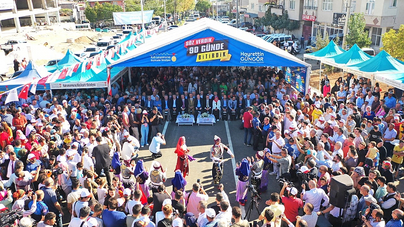 90 günlük rekor bir süreyle yapımı tamamlanan Tevfik Kadıoğlu Köprülü Kavşağı düzenlenen törenle trafiğe açıldı. Başkan Hayrettin Güngör, “Her alanda olduğu gibi ulaşım alanında da şehrimizin en az 50 yıl ilerisini görerek projelerimizi hayata geçirmeye gayret ediyoruz. Ulaşım altyapımızı geliştirmek ve hizmetlerimizi daha ileriye taşımak için Ulaşım Master Planımızı hazırladık. Hazırladığımız master plan çerçevesinde yatırımlarımızı hayata geçirmeye devam ediyoruz. Bugün de Tevfik Kadıoğlu Köprülü Kavşak projemizi de hedeflediğimiz sürede tamamlayarak hizmete almanın mutluluğunu yaşıyoruz. Örnek bir zaman içerisinde tamamladık. Bu noktada hemşehrilerimize verdiğimiz sözümüzü de yerine getirdik. Hayırlı uğurlu olsun” dedi.Kahramanmaraş Büyükşehir Belediyesi’nin dev ulaşım yatırımı Tevfik Kadıoğlu Köprülü Kavşağı düzenlenen törenle trafiğe açıldı. Toplamda 80 Milyon TL yatırımla hayata geçen proje, 10 Haziran tarihindeki temel atma töreninde belirlenen 90 günlük rekor bir sürede inşa edilerek hizmete alınmış oldu. Programda Büyükşehir Belediye Başkanı Hayrettin Güngör’ün yanı sıra, Vali Ömer Faruk Coşkun, 54’üncü Hükümet Milli Eğitim Bakanı Mehmet Sağlam, AK Parti Grup Başkanvekili Mahir Ünal, TBMM İçişleri Komisyonu Başkanı Celalettin Güvenç, Kahramanmaraş Milletvekilleri Ahmet Özdemir, Habibe Öçal, Cihat Sezal ve Sefer Aycan, İl Emniyet Müdürü Salim Cebeloğlu, KSÜ Rektörü Niyazi Can, AK Parti Yerel Yönetimler Başkan Yardımcısı Veli Böke, AK Parti İl Başkanı Fırat Görgel, MHP İl Başkanı Ertuğrul Doğan, ilçe belediye başkanları, teşkilat mensupları, STK temsilcileri, mahalle muhtarları ve çok sayıda vatandaş yer aldı.Renkli Anlara Sahne OlduSaygı duruşu ve İstiklal Marşı’nın okunmasıyla başlayan törende; programı nedeniyle açılışa katılamayan AK Parti Genel Başkan Yardımcısı ve Yerel Yönetimler Başkanı Mehmet Özhaseki’nin gönderdiği telgraf okundu. Protokol konuşmaları öncesi sahne alan Büyükşehir Belediyesi Folklor Ekibi, sergiledikleri performansla katılımcıların beğenisini kazandı. Abdal Halil Ağa Torunları,41 davul ve 2 zurna eşliğinde sahneledikleri performanslarıyla katılımcılardan yoğun alkış aldı. Açılış töreni, Türk Halk Müziği Sanatçıları Hatice Gökçeli, Furkan Pehlivan ve Orhan Deliloğlu tarafından verilen mini konserle devam etti. Çünkü Sözümüz VarProgramın açılış konuşmasını yapan Büyükşehir Belediye Başkanı hayrettin Güngör, “Sayın Cumhurbaşkanımızın İstanbul Büyükşehir Belediyesi’nde başlayarak günümüze kadar gelen çok değerli bir yolculuğu var. Bu süreçte Sayın Cumhurbaşkanımız, Türkiye’de yapılamaz denilen birçok yatırıma imza attı. Sayın Cumhurbaşkanımızın kendi ifadesiyle bu başarısının arkasında zamanı, mali yapıyı ve insan kaynaklarını iyi yönetmek yer alıyor. Bunların yanı sıra samimiyet ve gayreti de eklediğimizde bugüne nasıl geldiğimizi daha iyi anlayabiliyoruz. Bizler de Sayın Cumhurbaşkanımızın çizdiği vizyon çerçevesinde, Cumhurbaşkanımızın liderliğinde ve partimizin yerel yönetimler manifestosunda yer alan ilkeler çerçevesinde hizmetlerimizi yapmaya devam ediyoruz” diye konuştu.Şahıs Değil, Ekip Başarısı2019 – 2022 yılları arasında Kahramanmaraş’a toplamda 3,3 Milyar TL’lik yatırım kazandırıldığını ifade eden Başkan Güngör, “2019 yılında göreve geldiğimizde mali yapımızı ve insan kaynaklarımızı disipline ettik. Tabi bu süreç içerisinde tüm dünyayı derinden etkileyen bir de pandemi yaşadık. Pandemi, tüm dünyayı olduğu gibi belediyemizi de derinden etkiledi. Büyükşehir Belediyesi ve KASKİ olarak 2019 yılında 350 Milyon TL, 2020’de 438 Milyon TL, 2021’de 721 Milyon TL, 2022’de ise 2 Milyar TL’ye yakın bir yatırım hayata geçirdik. Yani 2019 yılından günümüze kadar 3,3 Milyar TL’lik yatırım yaptık. Hamdolsun projelerimizi hayata geçirmenin mutluluğunu yaşıyoruz. Daha önce görev yapan belediye başkanlarımız ve milletvekillerimiz gerçekleştirdikleri yatırımlarla şehrimizi bir konuma getirdiler. Bizler de aldığımız bu görevle şehrimizi daha da ileriye taşımaya gayret ediyoruz. Sayın Cumhurbaşkanımızın liderliğinde Grup Başkanvekilimiz Sayın Mahir Ünal, milletvekillerimiz, valimiz, il başkanımız, teşkilatımız ve tüm paydaşlarımızla koordinasyon içerisinde şehrimize hizmet etmeyi sürdüreceğiz. Buradaki başarı şahıs değil, ekip başarısıdır. Tüm paydaşlarımıza canı gönülden teşekkür ediyorum” dedi.Söz Verdik, Hedeflediğimiz Sürede TamamladıkTevfik Kadıoğlu Köprülü Kavşak projesinin hedeflenen sürede tamamlanarak hizmete alındığını vurgulayan Başkan Güngör, “Her alanda olduğu gibi ulaşım alanında da şehrimizin en az 50 yıl ilerisini görerek projelerimizi hayata geçirmeye gayret ediyoruz. Ulaşım altyapımızı geliştirmek ve hizmetlerimizi daha ileriye taşımak için Ulaşım Master Planımızı hazırladık. Hazırladığımız master plan çerçevesinde yatırımlarımızı hayata geçirmeye devam ediyoruz. Bugün de Tevfik Kadıoğlu Köprülü Kavşak projemizi de hedeflediğimiz sürede tamamlayarak hizmete almanın mutluluğunu yaşıyoruz. Örnek bir zaman içerisinde tamamladık. Bu noktada hemşehrilerimize verdiğimiz sözümüzü de yerine getirdik” ifadelerini kullandı.Ulaşımı KolaylaştıracakTevfik Kadıoğlu Köprülü Kavşak projesinin Kahramanmaraş için önemine değinen Başkan Hayrettin Güngör, “Projemizin şartnamesinde yer alan tamamlanma süresi 210 gündü. Müteahhit ile yaptığımız görüşmeler neticesinde projemizi tamamlamak için 90 günlük bir süre belirledik.10 Haziran tarihinde temelini attığı