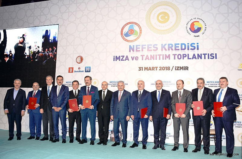 TOBB öncülüğünde, Oda ve Borsaların katkılarıylagerçekleştirilecek yeni Nefes Kredisi için imzalar Başbakan Binali Yıldırım, Gümrük ve Ticaret Bakanı Bülent Tüfenkci ve TOBB Başkanı M. RifatHisarcıklıoğlu’nun katılımlarıyla 31 Mart Cumartesi günü İzmir’de atıldı. Nefes Kredisinde faizler aylık yüzde0,99, yıllık yüzde 11,88 olarak belirlendi.Kredi vadesi, ilk 6 ay geri ödemesiz,takip eden 12 ay eşit taksitli olmak üzere toplam 18 ay olacak. İki üç ay içerisinde yaklaşık 70 bin Oda-Borsa üyesinin faydalanması beklenen Nefes Kredisi6 bankadan kullanılabilecek.Nefes Kredisi verecek bankalar Ziraat Bankası, Denizbank, Halkbank, Vakıfbank, Ziraat Katılım ve Vakıf Katılım olarak açıklandı.Üyelerimiz 2 Nisan 2018 Pazartesi gününden itibaren Nefes Kredisi kullanmaya başlayacak.Konu hakkında bir açıklamada bulunan Kahramanmaraş Ticaret ve Sanayi Odası (KMTSO) Başkanı Serdar Zabun, oluşturulan kaynağın KMTSO üyelerinin acil nakit ihtiyaçlarına çare olacağını belirterek, “KOBİ’lerimizin acil ihtiyaçlarını karşılamak üzere Türkiye Odalar ve Borsalar Birliği öncülüğünde oda ve borsalarımızın katkılarıyla geliştirilen Nefes Kredi Projesinin 2. fazı açıldı. Böylelikle, üyelerimize düşük faizli yeni bir kaynak oluşturuldu. Bu yeni kaynak dolayısıyla Hükümetimize ve TOBB Başkanımız RifatHisarcılıklıoğlu’na teşekkür ediyoruz. Ülkemizde oda ve borsalarımızekonomik ve sosyal kalkınmanın anahtarı olan kurumlar haline geldi. Geniş ve yenilikçi hizmetlerimizle biz de Kahramanmaraş Ticaret ve Sanayi Odası olarak üyelerimizin her an yanındayız. Küresel ölçekte rekabet gücünün artırılması ve yeni pazarlara erişimin yanında şimdi de finansmana erişim konusunda elimizi taşın altına koyduk. Üyelerimiz için yeni bir kaynak oluşturduk. Bu kaynak şehrimizde üretim ve ticareti önemli ölçüde canlandıracaktır. Hayırlı olsun” şeklinde konuştu. KOBİ’ler ‘Nefes’ Alacak