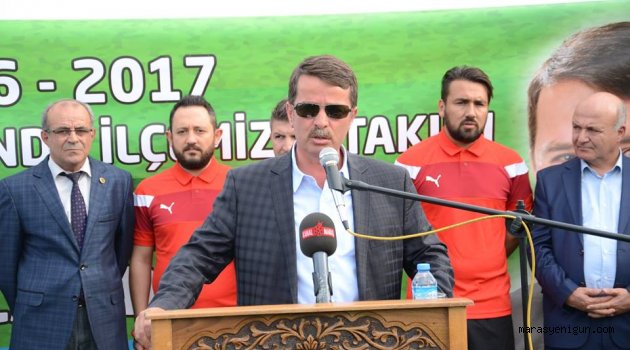 \r\n\r\nTürkoğlu Belediye Başkanı Osman Okumuş, Türkoğlu Belediye Sporun açılışındaki yaptığı konuşmada ; 2016- 2017 Amatör ligi sezon açılışını hepiniz hoş geldiniz şeref verdiniz.\r\n\r\nDeğerli misafirler Türkoğlu, Kahramanmaraş’ımızın parlayan yıldızlarından bir tanesi, belediyemizin her alanda yaptığı çalışmalarla göz dolduruyor, biz bu çalışmaların yanında daha önceden de aşina olduğumuz futbolla bu yıl inşallah güzel bir yerlere gelmek için start verdik. Hedefimiz bal ligi. Beyoğlu Belediye Başkanı iken amatör ligde hem de bal liginde mücadele vermiştik. Ama Türkoğlu’ndaki hizmetlerin aksamaması için iki yıllık aradan sonra futbolumuza tekrar döndük. Bu vesile ile bütün mesai arkadaşlarım ve ekibimizle gurur duyucu imzalar atıyoruz. Şuanda Türkoğlu yeni belediye binasıyla yaptığı parklarla, mahallelerdeki yollarla, Kahramanmaraş’ımızın ikinci büyük camisiyle eğitim kampüsüyle, 75 yataklı hastanesiyle, Türkiye’nin en büyük lojistik merkeziyle, 200 konutluk TOKİ yatırımlarıyla, 5000 kişilik cezaeviyle, Organize Sanayi Bölgesiyle ve sayamadığımız birçok yatırımlarıyla birlikte bir milyar tl ye yakın yatırımlar mevcut. Bu yükselişi inşallah sporla da taçlandırmak istiyoruz, diyerek konuşana başkan ‘Okumuş’ konuşmasına şu sözlerle devam etti.\r\n\r\nENGÜZEL SPOR TESİSİNİ İLÇEMİZE YAPACAĞIZ DİYE SÖZ VERMİŞTİK.\r\n\r\nDaha önce 27 dönümlük Beyoğlu Spor tesislerini 2007 yılında hizmete açmıştık. Biz Türkoğlu’na gelip aday olduğumuzda Beyoğlu’ndan daha güzel bir spor tesisini Türkoğlu’na kazandırmak için söz vermiştik. Şuanda içinde bulunduğunuz Futbol sahası daha önceden yapılan kapalı spor salonu, Büyükşehir Belediye Başkanımızın yaptırdığı tenis kordu, Ramazan ayının birinci günü açtığımız aqua parklı yüzme havuzu ile birlikte inşallah Türkoğlu’ndaki gençlerimizin sporu daha çok sevmesi, zararlı alışkanlıklardan daha fazla uzaklaşması için vesile olacak. Kılılı Mahallesindeki Futbol sahamızı spor il müdürümüzle birlikte protokol gereği inşallah iki aya kadar biteceğiz. Şekeroba Belediyemizede Beyoğlu’ndaki spor tesisleri gibi, buradaki spor tesisleri gibi inşallah bu kış başlayıp, o tesisleri de bitirdiğimiz takdirde belki de Kahramanmaraş’ımızın içerisinden daha fazla futbol sahasına kavuşmuş olacağız. Amacımız sadece futbol değil bütün branşlarda sporcularımızı, gençlerimizi desteklemektir.\r\n\r\nBen bu vesile ile bu sezon mücadele verecek bütün futbolcu arkadaşlarıma başarılar diliyorum. Özellikle futbol hocamıza ekibine başarılar diliyorum, dedi.\r\n\r\nTören sonunda Kaymakam Serdar Kartal, Belediye Başkanı Osman Okumuş gazetecilerle kaleye penaltı atışı gerçekleştirdiler. \r\n\r\nAçılışa, Türkoğlu Kaymakamı Serdar Kartal, Türkoğlu Belediye Başkanı Osman Okumuş, İl Spor Müdürü Ali İhsan Kabakçı,İl Tertip Komitesi Başkanı Ali Kazancı, AKSF Başkanı Ergün Ünal, Hakem Kurulu Başkanı Veli Ünlü, Türkoğlu Belediye Spor Futbolcuları ve vatandaşlar katıldı.\r\n\r\n \r\n