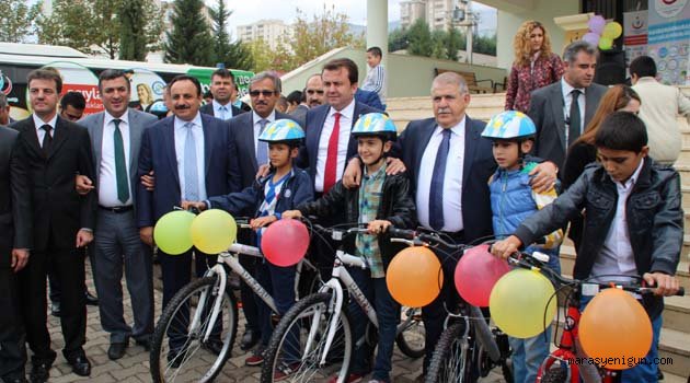 Türkiye obeziteyle mücadele programı kapsamında çocuklarda hareketli yaşamı alışkanlık haline getirmek için Kahramanmaraş Halk Sağlığı Müdürlüğü tarafından düzenlenen okullarda bisiklet hediye töreni Türk Telekom Ortaokulu’nda gerçekleştirildi.\r\n\r\nKahramanmaraş Halk Sağlığı Müdürlüğü Obezite, Diyabet ve Metabolik Hastalıklar Birimi tarafından seçmeli derslerde Spor ve Fiziki Etkinlik dersini seçen okullar tespit edilerek öğrencilere bisiklet hediye ediliyor.\r\n\r\nBu kapsamda Türk Telekom, Özel İdare İmam Hatip ve Serhan Çalık Ortaokullarına toplam 95 adet bisiklet hediye edildi.\r\n\r\nKahramanmaraş Büyükşehir Belediye Başkanı Fatih Mehmet Erkoç bisiklet dağıtım töreninde yaptığı konuşmada şunları dile getirdi : “ Aziz milletimizin geleceği için sağlıklı nesiller çok önemli. Bizler her zaman söylüyoruz, biz zengin doğal kaynakları olan bir ülke değiliz. Tek zenginliğimiz sosyal sermayemiz, beşeri kaynağımız insan. Tabi insanımızı en sağlıklı, en donanımlı yetiştirmek zorundayız. Obezite gerçekten insan sağlığını, Türkiye’yi tehdit eden en önemli sorunlardan bir tanesi ve çok da mali külfeti var. Bölgemizde de önemli sorunlardan bir tanesi obezite. Bununla mücadelede spor çok önemli, bizler Büyükşehir olarak bu konuda çok önemli adımlar atıyoruz. Okullarımıza spor alanları kazandırıyoruz.”\r\n\r\nKahramanmaraş Halk Sağlığı Müdürü Ahmet Yener konuşmasında şunları ifade etti: “Bu etkinliklerimizi uzun zamandan beri yapmaya başladık, yapmaya da devam edeceğiz. Sağlıklı yaşamı, hareketli yaşamı desteklemek için Sağlık Bakanlığı’mız geçmiş yıllardan beri birçok faaliyet yürütmekte. Geçen yıldan itibaren de artık illerimizde hareketli yaşamı desteklemek amacıyla bisiklet dağıtımına başlamış bulunmaktayız. Bu yıl İnşallah bin civarında okullarımıza bisiklet dağıtacağız.”\r\n\r\nKahramanmaraş İl Milli Eğitim Müdürü Mehmet Emin Akkurt ise şunları söyledi: “Bu töreni şunun için çok önemsediğimi belirtmek istiyorum. Birincisi, kurumlar arası birlikteliği içeriyor. İkincisi, sağlıklı bir toplumun eğitimli insanlarla olacağını bildiğim için bunu önemsiyorum. Obez insanlar artık dünyanın bir problemi haline gelmeye başladı ve koruyucu hekimliğinde en önemli ayaklarından bir tanesi fiziksel aktiviteleri artırarak almış oldukları gıdaları kendi vücutlarında yakabilecek nesillerin bireylerin yetişmesini sağlamaya çalışıyoruz.”\r\n\r\nKonuşmaların ardından bisikletler öğrencileri dağıtıldı. \r\n\r\nTürk Telekom Ortaokulu’nda yapılan bisiklet dağıtım törenine, Büyükşehir Belediye Başkanı Fatih Mehmet Erkoç, İl Sağlık Müdürü Murat Coşkun ve öğrenciler katıldı.\r\n