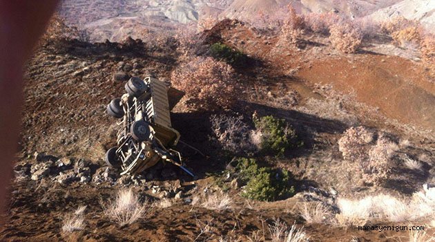 \r\n\r\nOlay yerindeki vatandaşlardan, kum yüklü bir kamyonun 100 metrelik uçurumdan düştüğü ve şoförün içinde sıkıştığı bilgisini alan itfaiye ekipleri, aracın devrilme ihtimalinin yüksek olması sebebiyle adeta zamanla yarıştı.