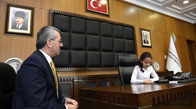 23 Nisan Ulusal Egemenlik ve Çocuk Bayramı dolayısıyla koltuğunu Türk Telekom Ortaokulu 5. sını.f öğrencisi Hazal Sakallı’ya devreden Başkan Güngör, “Bugün Hazal Başkanımızı misafir ettik. Gerçekten başkanlığa hemen adapte oldu. Bu anlamlı günde bizlere eşlik ettiği için kendisine teşekkür ediyorum” dedi.Kahramanmaraş Büyükşehir Belediye Başkanı Hayrettin Güngör, 23 Nisan Ulusal Egemenlik ve Çocuk Bayramı dolayısıyla Türk Telekom Ortaokulu Müdür Yardımcısı Ferhat Bal, Türkçe öğretmeni Ahmet Savtekin Samur, 5. sınıf öğrencisi Hazal Sakallı ve babası Ataman Sakallı’yı makamında ağırladı. Başkan Güngör, ziyarette Ulusal Egemenlik ve Çocuk Bayramı dolayısıyla makam koltuğunu 5. sınıf öğrencisi Hazal Sakallı’ya devretti. Misafirlerle yakından ilgilenen Başkan Güngör, “Öncelikle bütün çocuklarımızın 23 Nisan Ulusal Egemenlik ve Çocuk Bayramı’nı tebrik ediyorum. Bugün de Hazal Başkanımızı misafir ettik. Gerçekten başkanlığa hemen adapte oldu. Büyükşehir Belediyesi birimlerimizle irtibata geçti, eğitimle ilgili talimatlar verdi. Bu anlamlı günde bizlere eşlik ettiği için kendisine teşekkür ediyorum” dedi.Başkan Güngör Tüm Çocukları Davet Etti23 Nisan Ulusal Egemenlik ve Çocuk Bayramı dolayısıyla bir dizi etkinlik düzenleneceğinin altını çizen Başkan Güngör, “Gazi Mustafa Kemal Atatürk’ün çocuklarımıza armağan ettiği bu anlamlı günde Büyükşehir Belediyesi olarak biz de İl Milli Eğitim Müdürlüğü’müzle birlikte çeşitli etkinlikler düzenliyoruz. Etkinliklerimizde geleceğimizin teminatı olan yavrularımız doyasıya eğlenecek. Milli İrade Meydanı’nda gerçekleştirilecek etkinliklerimize tüm yavrularımızı ve ebeveynlerini davet ediyorum” ifadelerini kullandı.