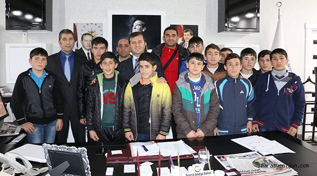 Kahramanmaraş Merkez'da düzenlenen Yıldız Erkekler Voleybol Şampiyonası'nda şampiyon olan Öğrenciler Pazarcık Belediye Başkanı Yaukup Hamdi Bozdağ'ı makamında ziyaret ettiler.