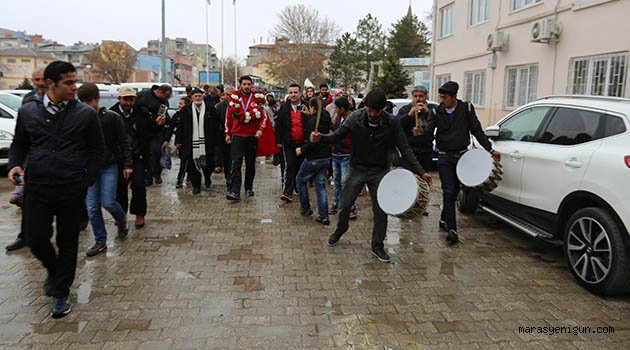 \r\n\r\nYunanistan'ın başkenti Atina'da düzenlenen Wushu Balkan Şampiyonasında, büyükler kategorisinde 90 kilogramda Balkan Şampiyonasında şampiyon olan Ali Akkaya’ya Afşin’de karşılama töreni düzenledi.\r\n\r\n Afşin’e Balkan Şampiyonu olarak dönen Ali Akkaya, Afşin Belediye Başkan Yardımcısı Nusret Karataş, AK Parti İlçe Başkanı Şeref Kırbıyık, Milli Takım Antrenörü Selçuk Kayapınar, Belediye Spor yetkilileri, ailesi, sporcu arkadaşları ve yakınları tarafından davul zurna ile karşılandı. Balkan Şampiyonu Ali Akkaya’yı başarısından dolayı tebrik eden Afşin Belediye Başkan Yardımcısı Nusret Karataş, genç sporcuya başarılarını devamını diledi. Elde edilen başarının önemine vurgu yapan Karataş, “ Öncelikle sporcumuzun annesine, babasına ve antrenörümüz Selçuk Kayapınar’a teşekkür ediyorum. Sporcumuz, gerçekten gurur verici ve Avrupa düzeyinde bir başarı elde etti. Birçok ülkenin katıldığı şampiyonada, aramızdan, mahallemizden çıkan bir hemşerimiz bizi, ülkemizi Atina’da temsil etti ve istiklal marşımızı orada okuttu” dedi.\r\n\r\nAfşin Belediyesi olarak spora ve sporcuya her zaman önem verdiklerini belirten Karataş, “ Sportif faaliyetlere hem madden hem de manen destek oluyoruz. Bu tür başarılar geldikçe ve artıkça bizlerinde destekleri artarak devam edecektir. Sporcumuzu tebrik ediyorum. Başarılarının devamını diliyorum” şeklinde konuştu.\r\n\r\nAfşin’de birçok alanda derece yapan sporcu sayının arttığını söyleyen AK Parti Afşin İlçe Başkanı Şeref Kırbıyık, “Atina’da düzenlenen şampiyonada Türkiye’yi, Afşin’i temsil eden ve Balkan Şampiyonu olan Ali Akkaya kardeşimizi kutluyorum. Kendisi orada ay yıldızlı bayrağımızı göndere çektirerek, istiklal marşımızı okuttu. İnşallah sporun her alanında derece almaya devam edeceğiz. Sporcumuzun bu başarısında emekleri olan Afşin Belediye Başkanımız Mehmet Fatih Güven’e, antrenörümüze ve ailesine teşekkür ediyorum ” diye konuştu. \r\n\r\nAli Akkaya’nın 2014 yılında düzenlenen Balkan Şampiyonasında da ikinciliği olduğunu belirten Milli Takım Antrenörü Selçuk Karakaya, gelen şampiyonluğun tesadüf olmadığını söyledi.\r\n\r\nBalkan Şampiyonasına büyükler kategorisinde Türkiye’den katılan 5 sporcudan birinin Afşin’den çağırıldığını ifade eden Kayapınar,” 2008 yılından buyana ilçemizde Wushu sporundaki çalışmalarımızı sürdürüyoruz. İlçemizden her yıl bir veya iki sporcumuzu gönderiyoruz. Afşin olarak Wushu sporunda çok iddialıyız” dedi.\r\n\r\nDünya Şampiyonasına katılmak için çalışmalarına devam edeceğini söyleyen Ali Akkaya,“ Yunanistan’da düzenlenen Balkan Şampiyonasında ülkem adına mücadele ettim ve rakiplerimi yenerek şampiyon oldum. Bana destek olan Afşin Belediye Başkanımız Mehmet Fatih Güven’e, antrenörümüze ve aileme teşekkür ediyorum. İnşallah bütün sporcularımız, katıldıkları müsabakalarda başarılı olur ve istiklal marşımızı okuturlar. Önümüzde Türkiye şampiyonası var. Burada güzel bir başarı yakalamak ve büyükler dünya şampiyonasında ülkemizi temsil etmek istiyorum” diye konuştu.\r\n\r\nYapılan konuşmaların ardından Başkan Yardımcısı Karataş, genç sporcu ve antrenörüyle hatıra fotoğrafı çektirdi.\r\n\r\nTürk Milli Takımı, Takım Halinde Birinci Oldu\r\n\r\nYunanistan'da düzenlenen Balkan Şampiyonasına Türkiye’nin yanı sıra, Bosna Hersek, İtalya Fransa Hırvatistan Sırbistan, Makedonya, Yunanistan ve Kıbrıs Rum Kesimi milli takımları da katıldı.\r\n\r\nTürkiye'den 108'i sporcu olmak üzere toplam 173 sporcu, antrenör ve yönetici şampiyonda yer aldı. Türk Milli Takımı sporcuları Balkan Şampiyonasında takım halinde birinci oldı. 100'e yakın madalya kazanan milli sporcularımız yurda dönüyor.\r\n\r\n \r\n