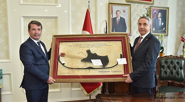 Bir dizi ziyaretler için Türkoğlu ilçesine gelen AK Parti MKYK Üyesi Yerel Yönetimler Başkan Yardımcısı Mücahit Yanılmaz, Kahramanmaraş Büyükşehir Belediye Başkanı Hayrettin Güngör, AK Parti İl Yerel Yönetimler Başkanı Hakan Dereli ve Genel Merkez Yerel Yönetimler Uzmanı Ferdi Kandemir ile birlikte, Türkoğlu Belediye Başkanı Osman Okumuş’ u makamında ziyaret ettiler.Türkoğlu Belediye Başkanı Osman Okumuş, misafirlere 2014-2024 yılları arasında ilçeye kazandırmış olduğu projeler ve faaliyetleri hakkında sunumlar yaparak bilgiler verdi.Sunumun ardından Başkan Okumuş; Değerli Başkanıma göstermiş olduğu ilgi ve alakadan dolayı aynı zamanda belediyecilik tecrübelerini bizimle paylaştığı için teşekkür ederim. İfadelerinde bulundu.AK Parti MKYK Üyesi Yerel Yönetimler Başkan Yardımcısı Mücahit Yanılmaz ise sunumun ardından yaptığı konuşmasında; “Türkoğlu Belediye Başkanımız Osman Okumuş, bilgisiyle, görgüsüyle, tecrübesiyle, projeciliğiyle Türkoğlu 'na çok önemli katma değerler sağlamış. Tekrardan tebrik ediyorum. Allah muvaffak etsin.Şu ekranda gördüğümüz her bir slayt aslında bir zahmet ürünü. Kolay işler değil bir yeri kamulaştırmak. Var olan bir işyerlerini alıp başka yere götürmek, kaymakamlık binasını almak, hükümet binasını almak, Lojmanları almak, dışardan bakıldığında kolay görülür ama işin içine girdiğinde müthiş bir zorluklarla karşı karşıya kalırsınız. Bu zorlukları aşarak başaran bir belediye başkanı gördüm. Çok güzel projeler. Her slayttı keyifle izledim. AK Partili Belediye Başkanlarının gönlü aşkla dolu. Aşkla mücadele veriyorlar.” Diyerek konuştu.