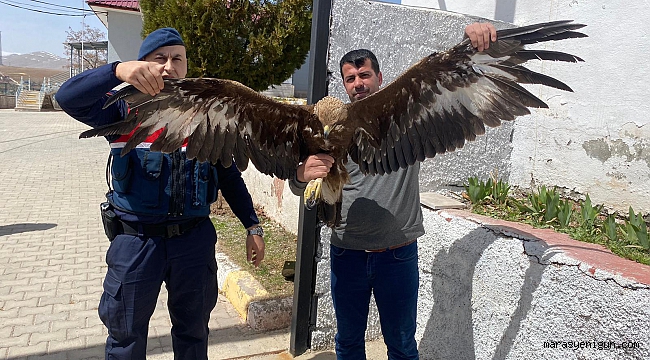 Kahramanmaraş’ın Afşin ilçesinde kanadından yaralanan kartala, jandarma ekipleri sahip çıktı.