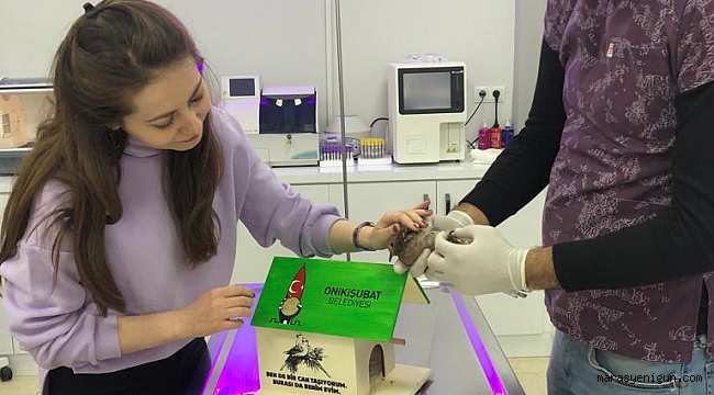 Onikişubat Belediyesi personellerinin yaralı olarak bulduğu kumru yavrusu, büyük bir hassasiyet örneği gösterilerek tedavi altına alındı.