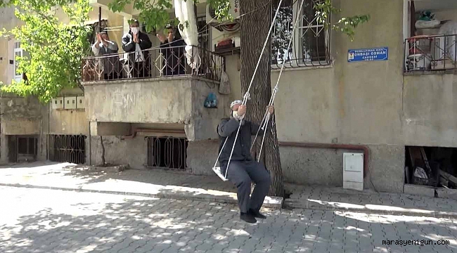 Yapılan uygulamayla sokağa çıkma fırsatı elde eden Kahramanmaraşlı iki kardeş, 50 gün sonra çıktıkları evleri önünde salıncak kurarak çocuklar gibi eğlendiler.
