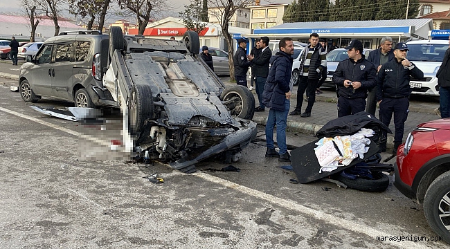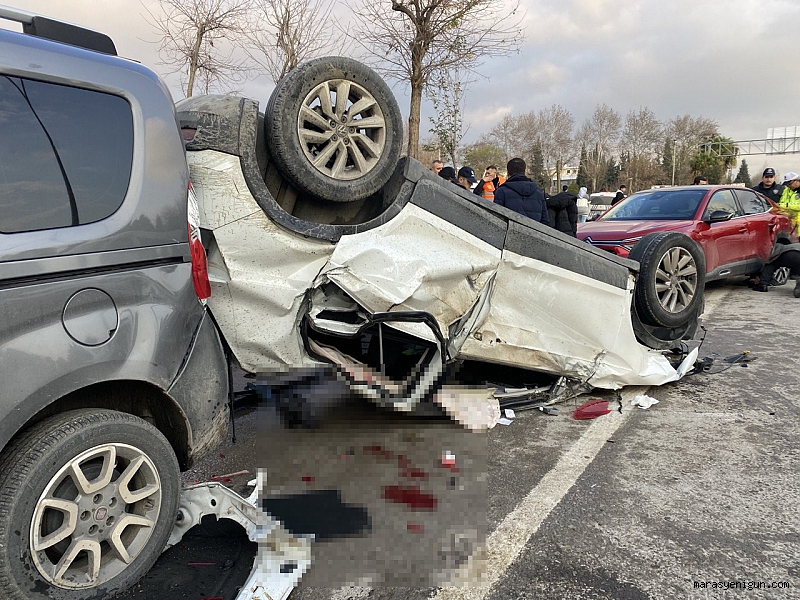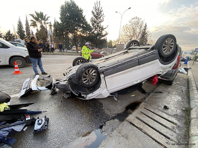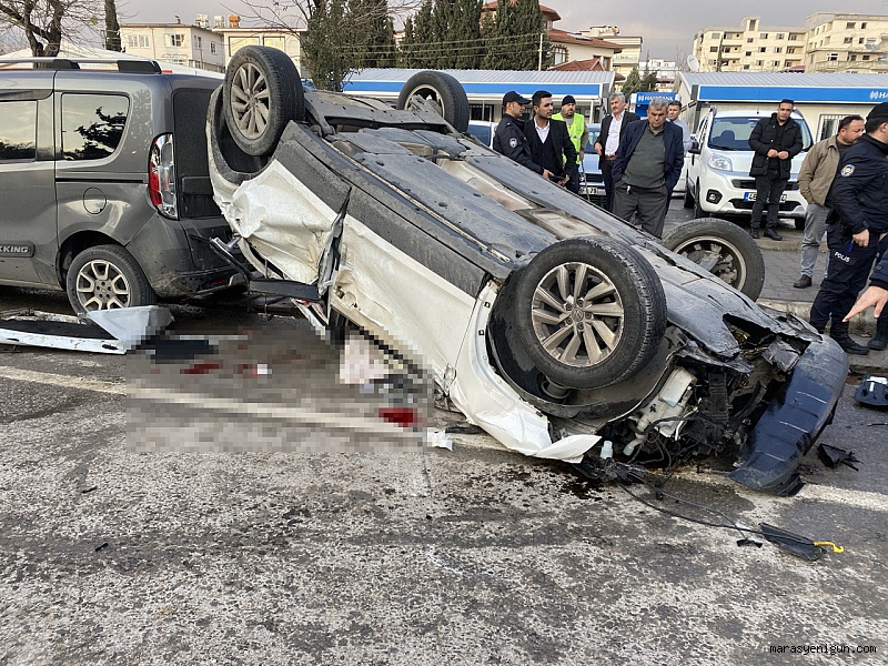 Kahramanmaraş’ta yayaya çarpmamak için sürücüsünün manevra yaptığı otomobil, 2 araca çarpıp takla attı. Kazada 1 kişi hayatını kaybetti, 2 kişi yaralandı.Edinilen bilgiye göre kaza, merkez Dulkadiroğlu ilçesi İstasyon Mahallesi Doğu Çevre Yolu’nda meydana geldi. İddiaya göre, Doğu Çevre Yolunda seyir halindeki Volkswagen marka 46 AFL 961 plakalı otomobil, yolun karşısına geçmeye çalışan vatandaşa çarpmamak için ani manevra yaptı.Sürücünün direksiyon hakimiyetini kaybettiği otomobil, Citröen marka 38 AJP 319 ve Fiat marka 46 AHL 112 plakalı otomobile çarptı. Daha sonra Volkswagen marka araç taklalar atarak kaldırıma çıktı. Hurda yığını haline dönüşen otomobilin içerisinde yolcu konumunda bulunan Halil İbrahim Kocabaş hayatını kaybederken, sürücü ve bir diğer yolcu ise yaralandı.Çevredeki vatandaşların ihbarı üzerine bölgeye polis ve sağlık ekipleri sevk edildi. Yaralılar, olay yerinde yapılan ilk müdahalesinin ardından ambulanslarla çeşitli hastanelere, hayatını kaybeden Halil İbrahim Kocabaş’ın cansız bedeni ise morga kaldırıldı.Kaza ile ilgili inceleme başlatıldı.