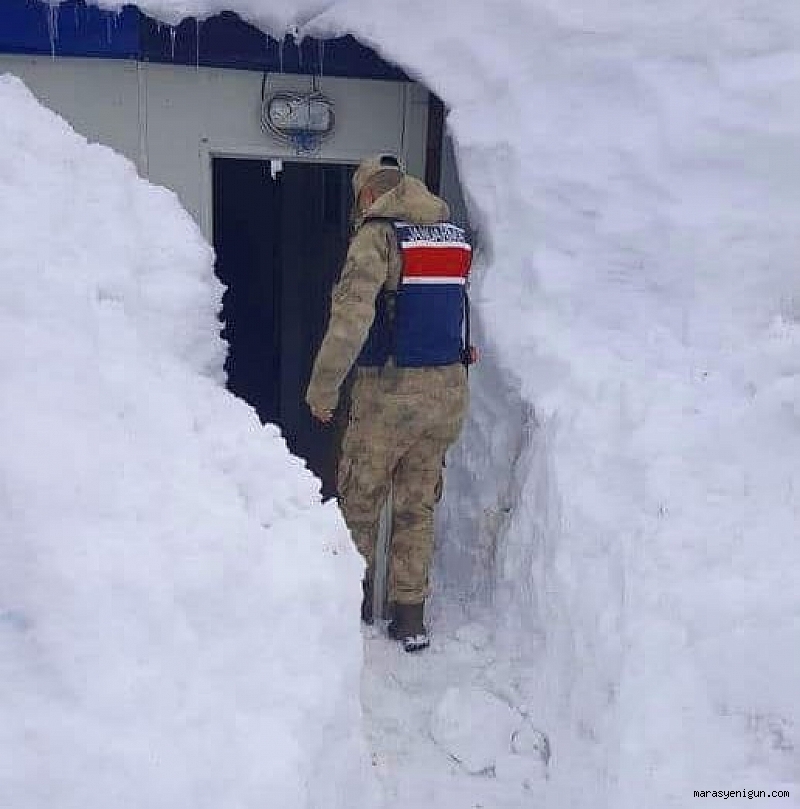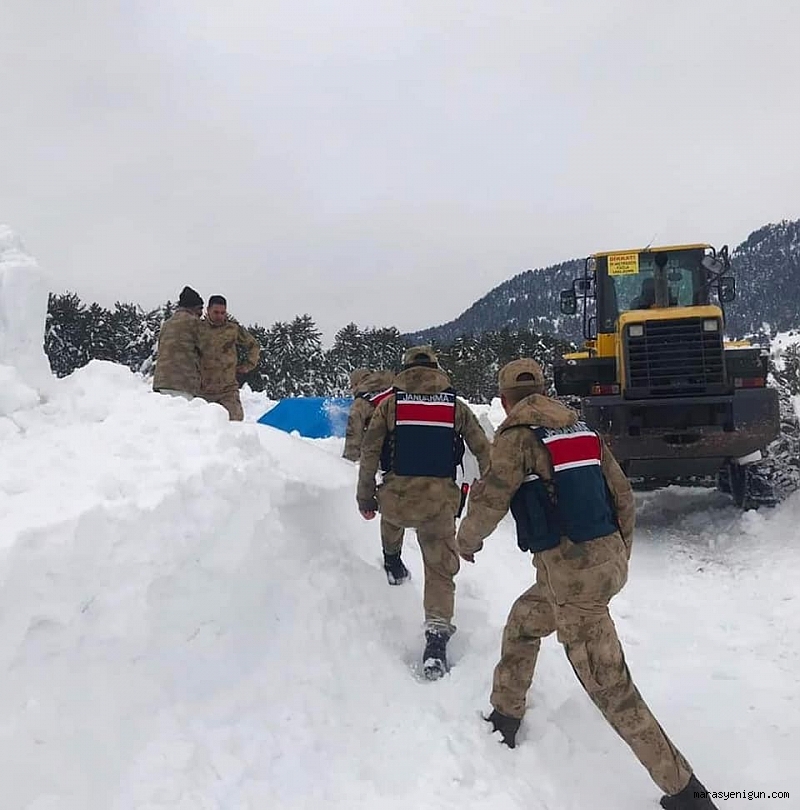 Kahramanmaraş'ın Andırın ilçesine bağlı Çığşar yaylasında yoğun kar yağışından dolayı yayla evinde bir haftadır mahsur kalan dayı ve yeğenini Jandarma ekipleri kurtardı.