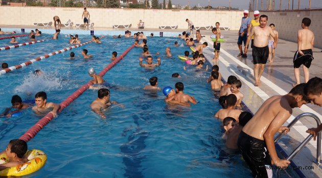 \r\n\r\n Diyanet İşleri Başkanlığı ile Gençlik ve Spor Bakanlığı arasında sosyal, kültürel ve sportif etkinlikler çerçevesinde çocukların ve gençlerin manevi gelişimlerine katkı sağlamak amacıyla yapılan işbirliği protokolü çerçevesinde yüzme havuzunda buluştu.\r\n\r\nGençlik Hizmetleri Spor İl Müdürlüğüne bağlı Batıpark Spor kompleksi içinde bulunan yüzme havuzunda yüzlerce Kuran Kursu Öğrencisi stres attı. Gençlik Hizmetleri spor İl Müdürü Ali İhsan Kabakçının büyük özverisiyle hazırlanan havuza başta Dulkadiroğlu İlçe Müftülüğüne bağlı Sarayaltı, Şeyhadil, İsadivanlı, Kışla ve Onikişubat İlçe Müftülüğünden Zeytinburnu Camiinde öğrenim gören 120 öğrenci yüzerek havuzun tadını çıkardı.\r\n\r\nÖğrencileri Cami görevlileri; Şevket Bozdoğan, Ali Sarıkaya, Cuma Biricik, Hacı Ali Güneçıkan, İlhan Sarı, takip etti ve onları gözden ayırmadılar.\r\n\r\nBatıpark Yüzme havuzunda Cankurtaran ve Yüzme hocaları herhangi bir boğulma olayına karşı çok dikkatli bir şekilde görev yapıyor.\r\n\r\nÖzellikle Akdeniz bölgesinin sıcak hava dalgasıyla 48 derecelere çıktığı şu günlerde sıcaktan bunalan öğrencilerin derse daha iyi motive olmaları için sportif faaliyetlerin başında yüzme geliyor.\r\n\r\nÖğrenciler, Kahramanmaraş Büyükşehir belediyesi Ulaşım dairesi başkanlığınca tahsis edilen otobüsle gidiş ve gelişleri sağlandı.\r\n\r\nŞeyh adil cami İmam hatibi Ali Sarıkaya sıcakların artmasıyla çocukların derslere daha iyi katılımlarını sağlamak amacıyla bu etkinliklerin şart olduğunu söyledi.\r\n\r\nKışla camii İmam hatibi Din görevlileri ve gönüllüleri dernek başkanı Şevket Bozdoğan da açıklamalarda bulundu. Başkan Bozdoğan gençlik Hizmetleri İl Müdürlüğüne ve büyükşehir belediyesi Ulaşım dairesine teşekkür etti.\r\n\r\nHABER-KAMERA: HACI ALİ GÜNEÇIKAN\r\n\r\n \r\n